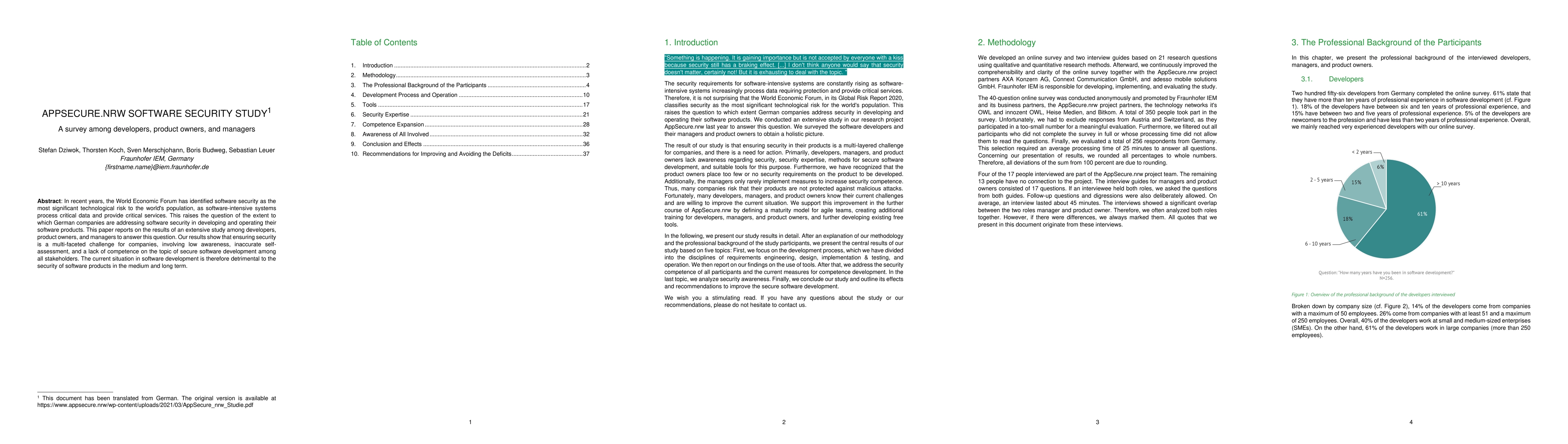 This study investigates German companies' approaches to software security, revealing low awareness, inaccurate self-assessment, and insufficient competence among stakeholders, which poses a significant risk to the security of software products in the future. The findings highlight the urgent need for improved security practices in software development.