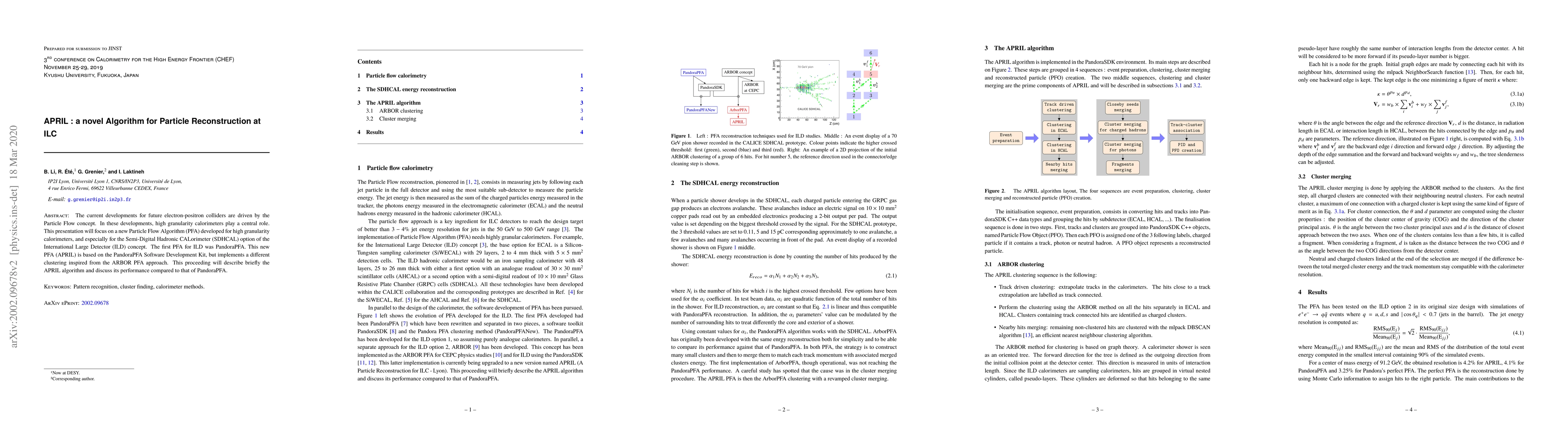 A new Particle Flow Algorithm (APRIL) for high granularity calorimeters at future electron-positron colliders improves upon a previous approach, offering enhanced performance and clustering inspired by the ARBOR PFA method.