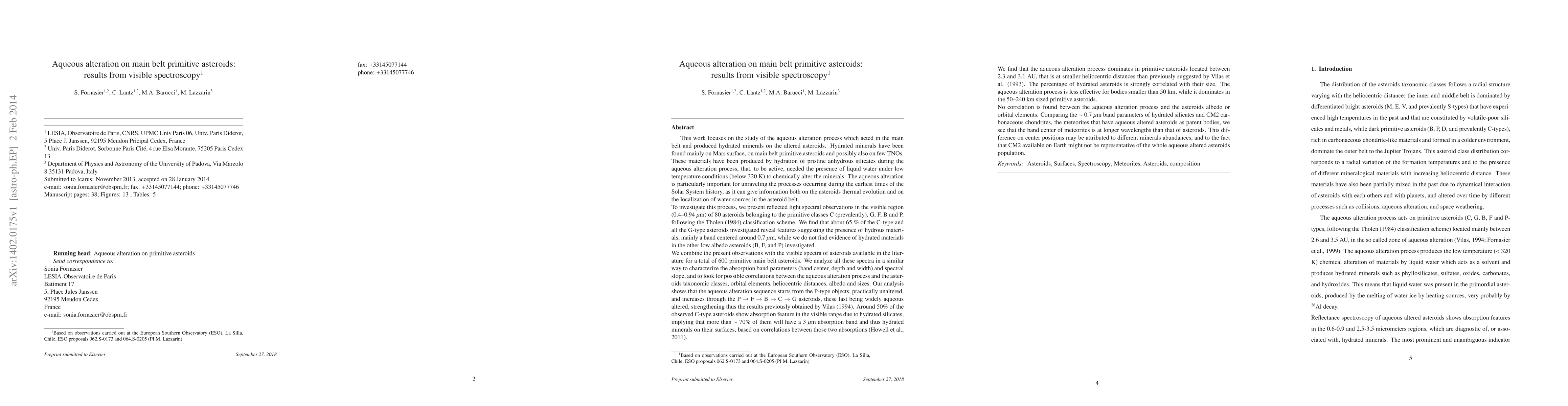 This study investigates the aqueous alteration process on primitive main belt asteroids, revealing that it is most prevalent among C-type asteroids located between 2.3 and 3.1 AU, with over 70% showing hydrated minerals. The alteration sequence is least in P-type asteroids and most in C-type, with no correlation to albedo or orbital elements.