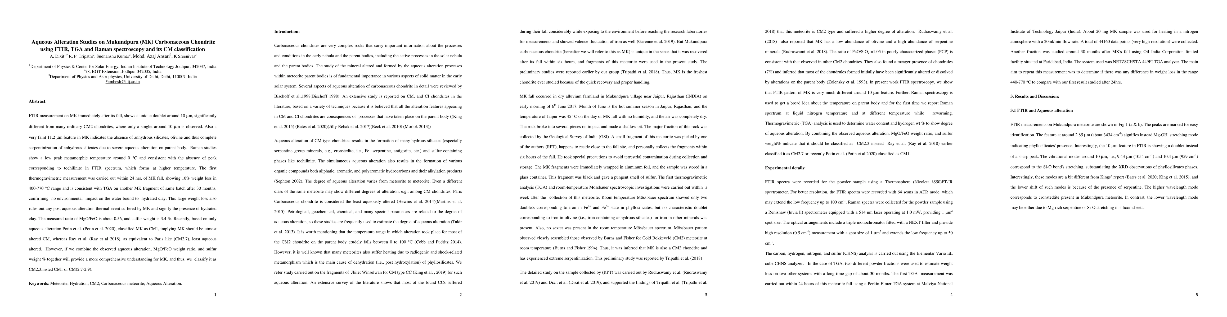 This study uses FTIR, TGA, and Raman spectroscopy to analyze the Mukundpura carbonaceous chondrite, revealing significant aqueous alteration. The findings suggest a classification of MK as CM2.3, based on its unique spectral features, low metamorphic temperature, and hydrated clay presence, rather than the previously proposed CM1 or CM2.7.