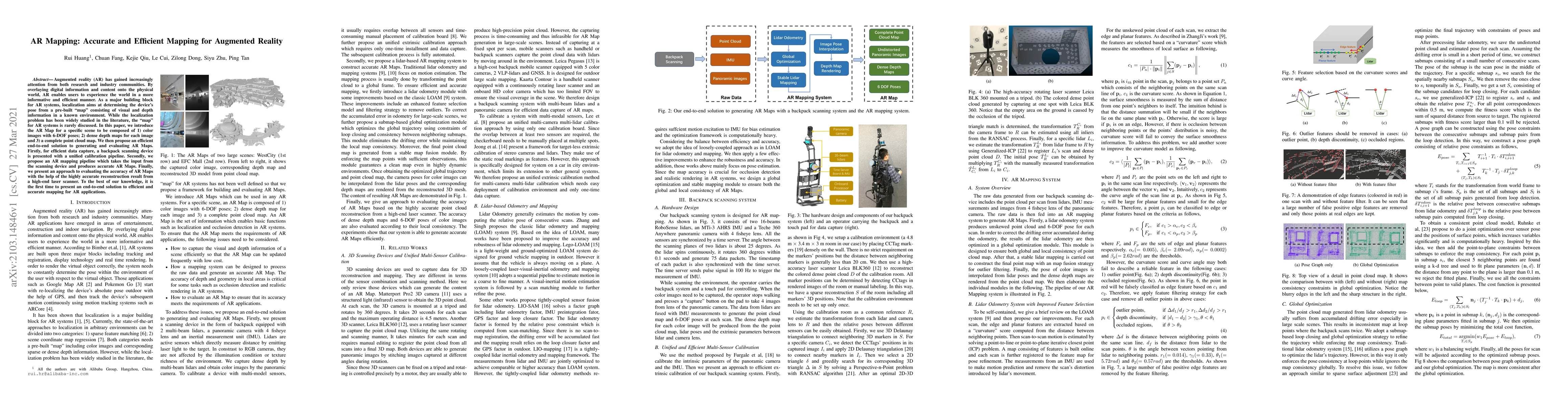 A backpack scannings system is designed with a unified calibration approach for efficient data capture, and the raw data is further processed by an ARMappings system to generate accurate ARMaps.