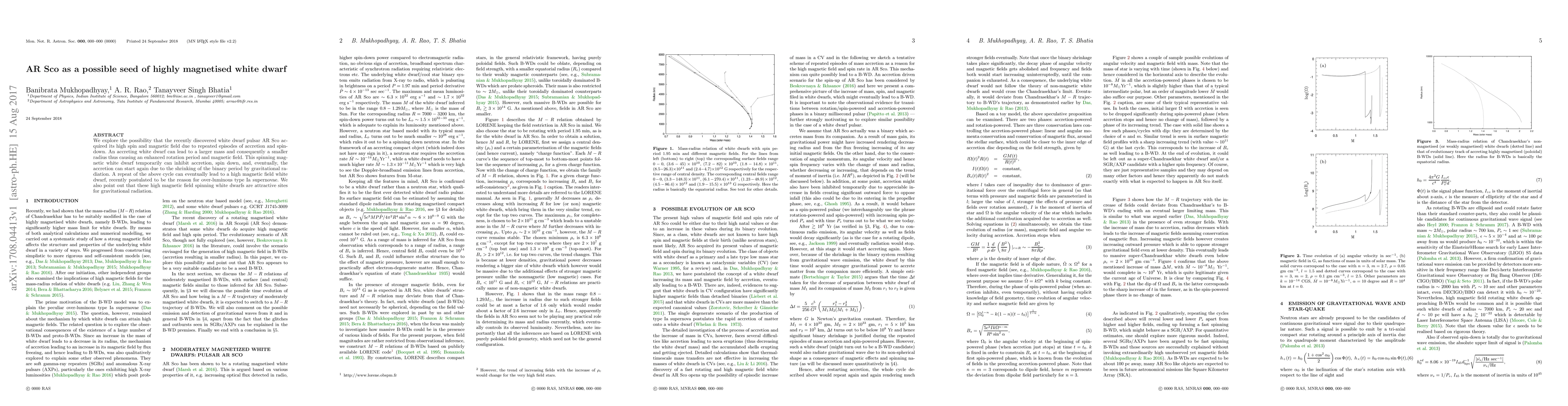 This paper investigates whether the white dwarf pulsar AR Sco developed its high spin and magnetic field through repeated accretion and spin-down cycles, potentially explaining its status as a highly magnetised white dwarf and its relevance to over-luminous type Ia supernovae. The study also highlights the gravitational radiation potential of such spinning magnetic white dwarfs.