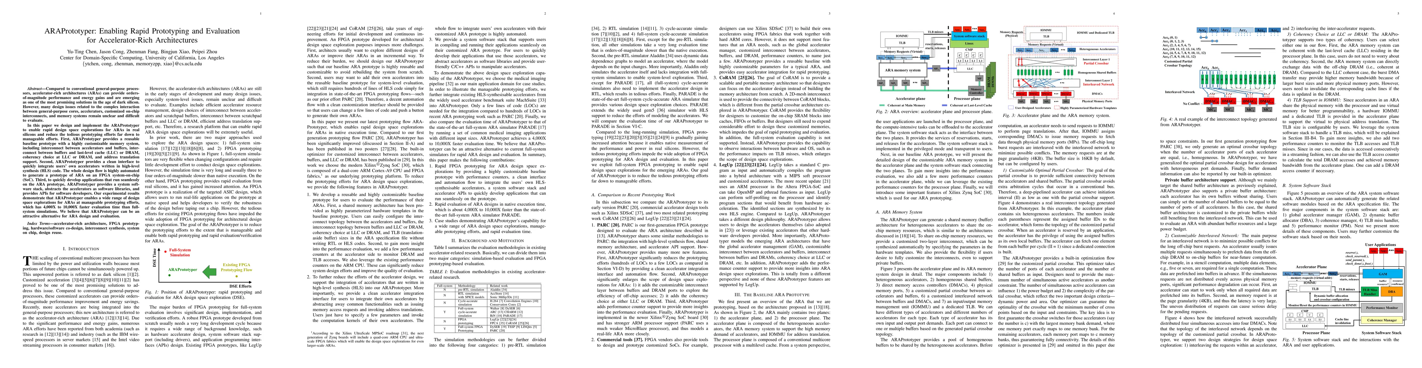 The ARAPrototyper tool enables rapid prototyping and evaluation of accelerator-rich architectures (ARAs) by providing a customizable baseline prototype and automated design flow for FPGA SoCs, significantly reducing evaluation time compared to full-system simulations. It also offers a software stack and APIs to facilitate application development for the ARAs.