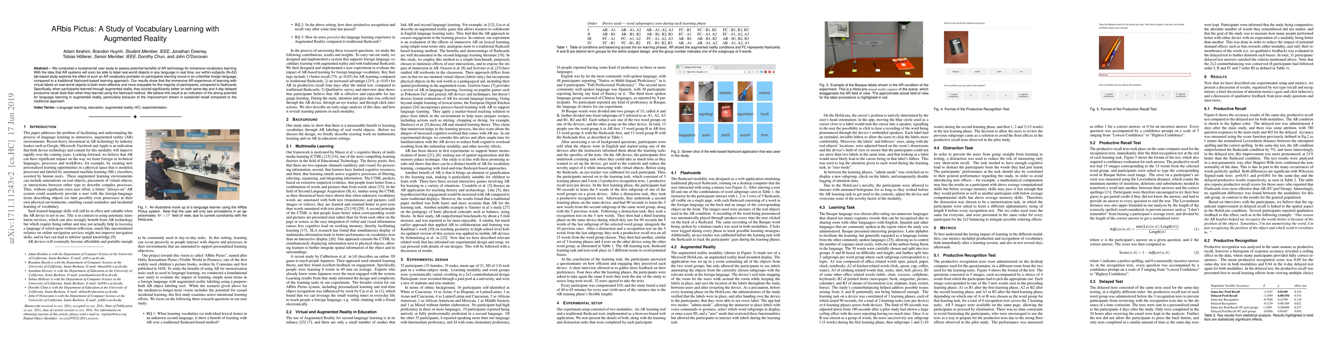 A study found that using augmented reality to learn a foreign language through virtual labels on real-world objects was more effective and enjoyable than traditional flashcards, improving both immediate and delayed recall.