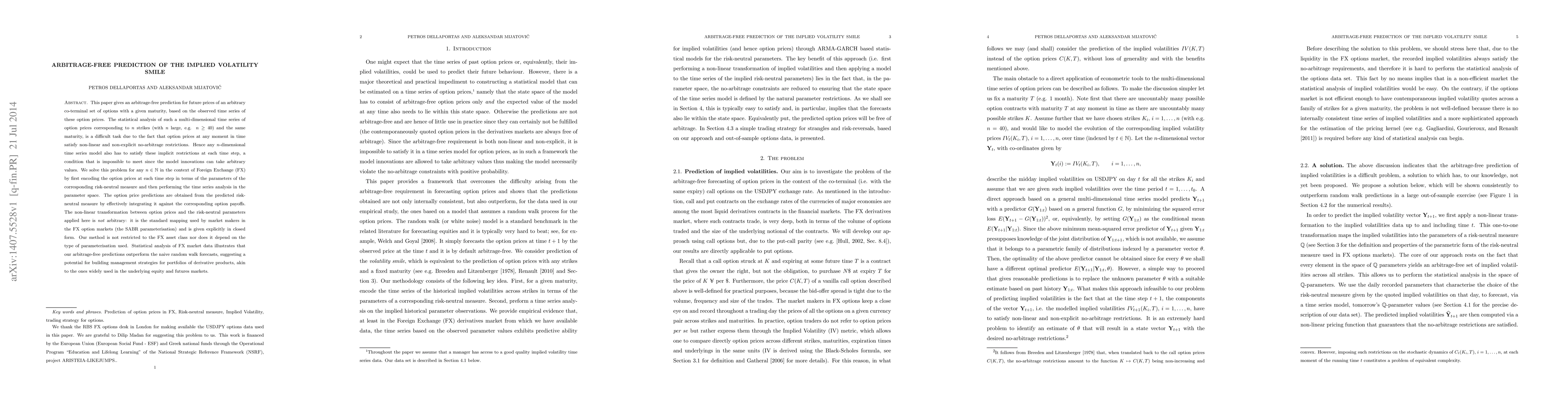 This paper proposes an arbitrage-free method for predicting future prices of a large set of options based on observed time series data, addressing the challenge of non-linear no-arbitrage restrictions. It uses the SABR parameterisation in the Foreign Exchange market to encode option prices and perform time series analysis, demonstrating superior performance over random walk forecasts.