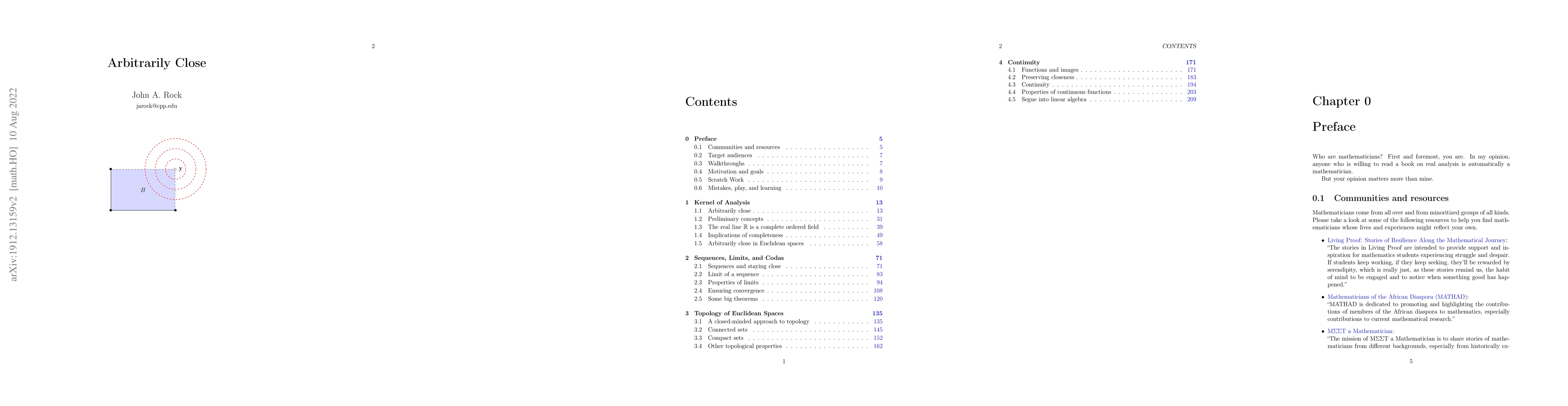 Mathematicians tend to use the phrase "arbitrarily close" to mean something along the lines of "every neighborhood of a point intersects a set". Taking the latter statement as a technical definition for arbitrarily close leads to an alternative development of classic concepts in real analysis such as supremum, closure, convergence and limits of sequences, closure, connectedness, compactness, and continuity. The goal of this text is to provide readers with an introduction to real analysis by taking deliberate steps to parse these difficult concepts using arbitrarily close as the kernel.