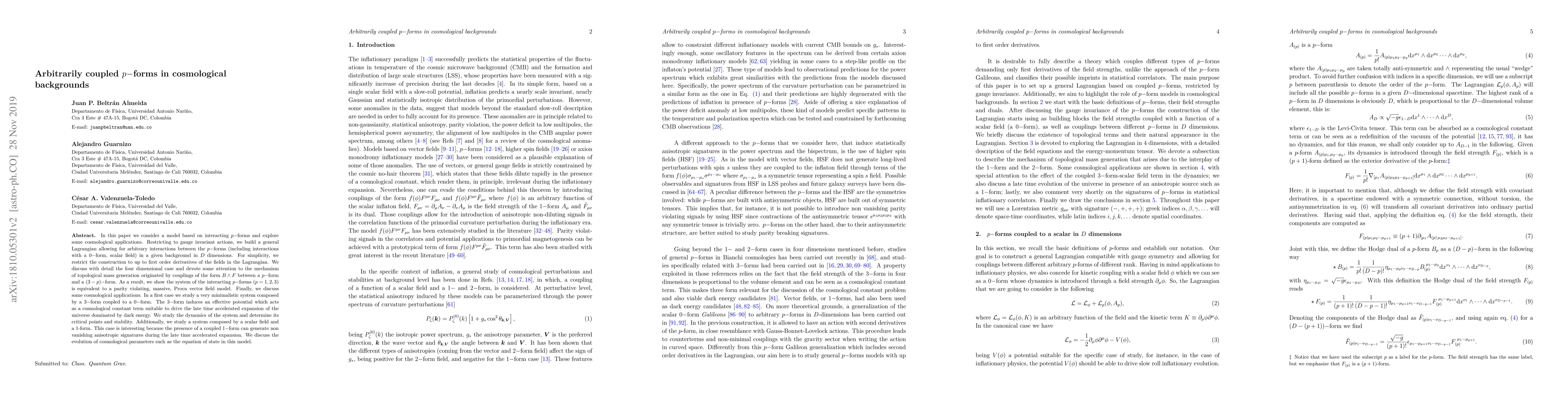 This paper explores how arbitrary interactions between p-forms in cosmological backgrounds can lead to a parity-violating, massive Proca vector field model, with implications for dark energy-driven accelerated expansion and anisotropic signatures.