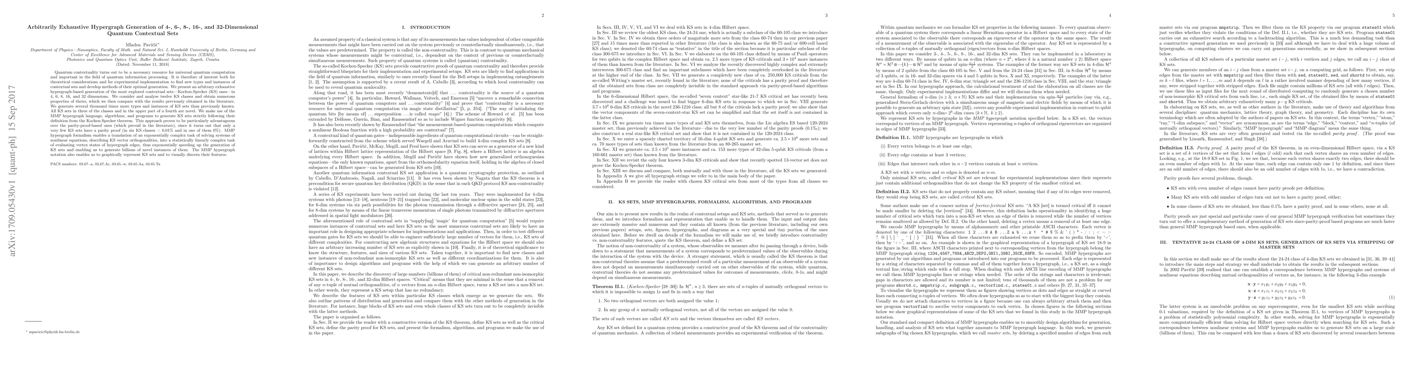 Researchers generated thousands of new types of quantum contextual sets, known as Kochen-Specker sets, using a hypergraph-based approach that speeds up the generation process exponentially. The findings provide new insights into the properties of KS sets and their potential applications in universal quantum computation and information processing.