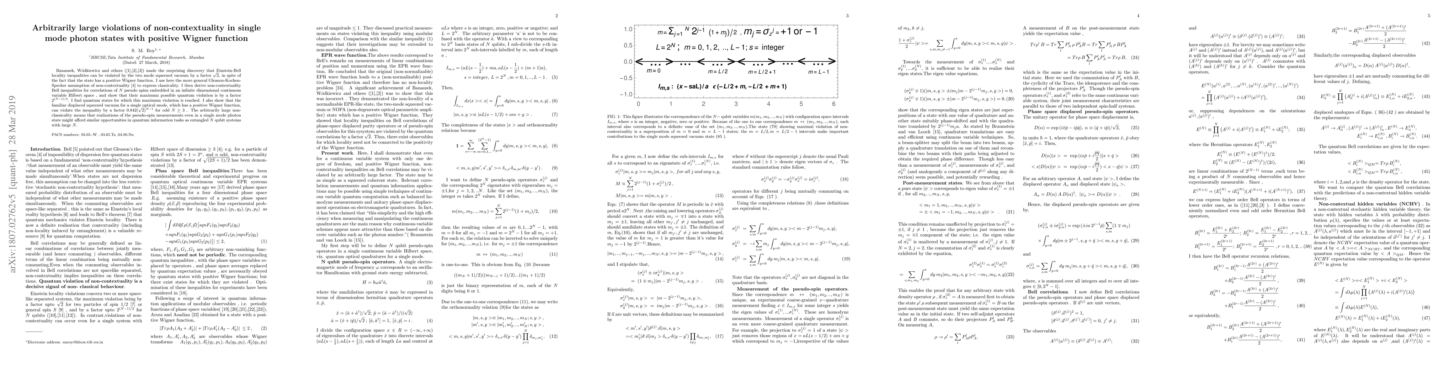 Banaszek, W\'odkiewicz and others (\cite{Banaszek},\cite{Chen},\cite{Chen-Zhang}) made the surprising discovery that Einstein-Bell locality inequalities can be violated by the two mode squeezed vacuum by a factor $\sqrt{2}$, in spite of the fact that the state has a positive Wigner function. I use here the more general Gleason-Kochen-Specker assumption of non-contextuality \cite{Gleason} to express classicality. I then derive non-contextuality Bell inequalities for correlations of $N$ pseudo spins embedded in an infinite dimensional continuous variable Hilbert space, and show that their maximum possible quantum violation is by a factor $2^{(N-1)/2}$. I find quantum states for which this maximum violation is reached. I also show that the familiar displaced squeezed vacuum for a single optical mode, which has a positive Wigner function, can violate the inequality by a factor $0.842 (\sqrt{2})^{N-1} $ for odd $N \geq 3$ . The arbitrarily large non-classicality means that realizations of the pseudo-spin measurements even in a single mode photon state might afford similar opportunities in quantum information tasks as entangled $N$ qubit systems with large $N$.