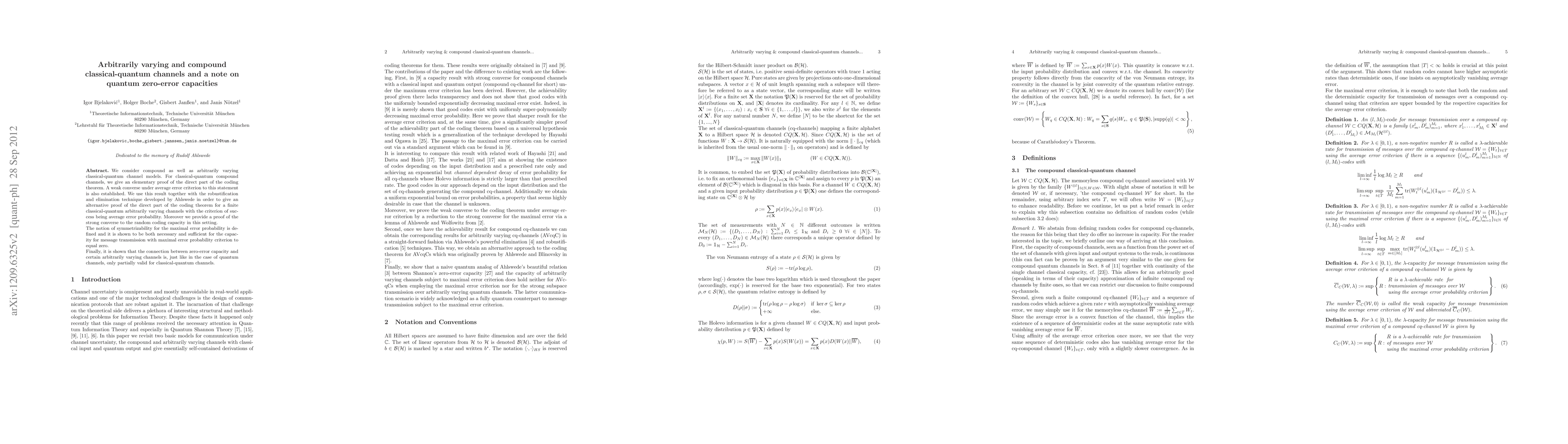 This paper explores compound and arbitrarily varying classical-quantum channels, proving the direct part of the coding theorem and establishing a weak converse under average error. It also demonstrates the strong converse to the random coding capacity and discusses the symmetrizability necessary for zero-error capacity.