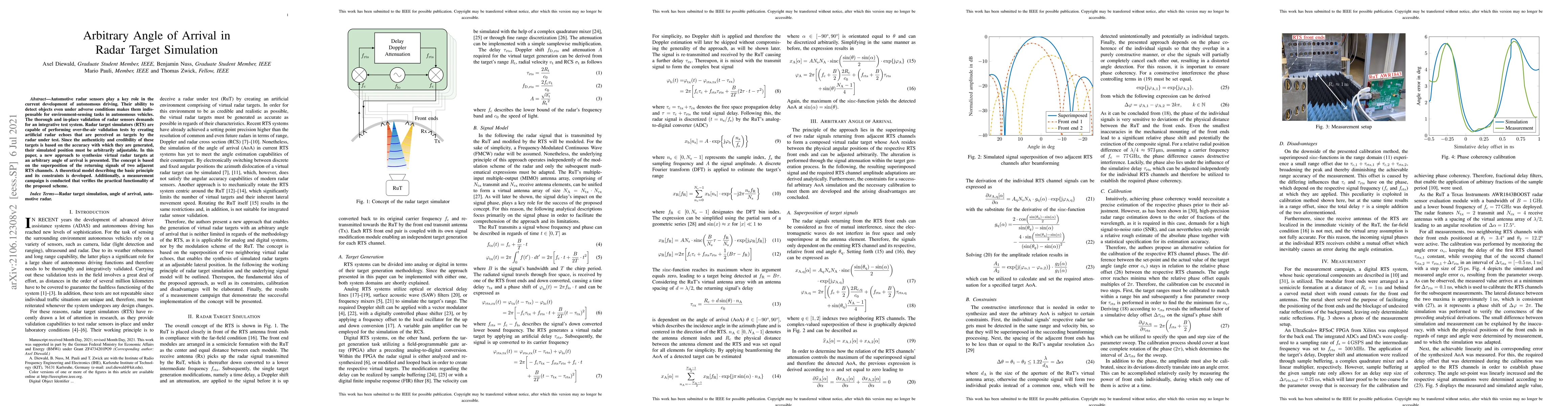 Researchers developed a method to simulate radar targets at arbitrary angles of arrival for autonomous vehicle testing, allowing for more realistic validation of automotive radar sensors.