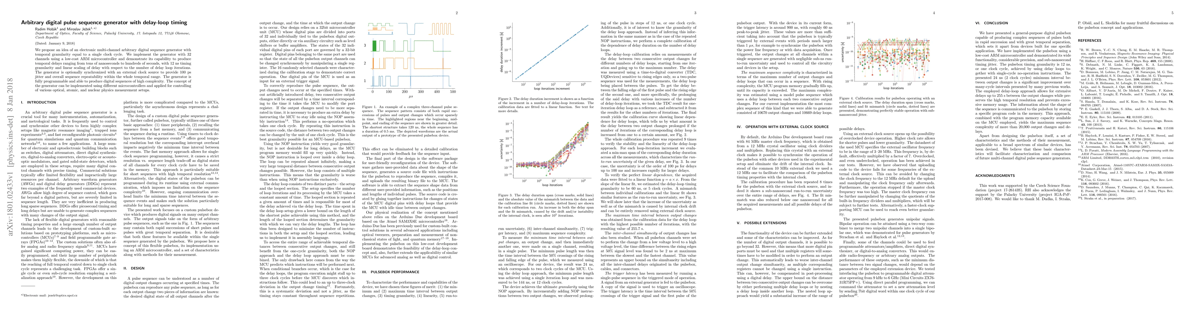 We propose an idea of an electronic multi-channel arbitrary digital sequence generator with temporal granularity equal to a single clock cycle. We implement the generator with 32 channels using a low-cost ARM microcontroller and demonstrate its capability to produce temporal delays ranging from tens of nanoseconds to hundreds of seconds, with 12 ns timing granularity and linear scaling of delay with respect to the number of delay loop iterations. The generator is optionally synchronized with an external clock source to provide 100 ps jitter and overall sequence repeatability within the whole temporal range. The generator is fully programmable and able to produce digital sequences of high complexity. The concept of the generator can be implemented using different microcontrollers and applied for controlling of various optical, atomic, and nuclear physics measurement setups.