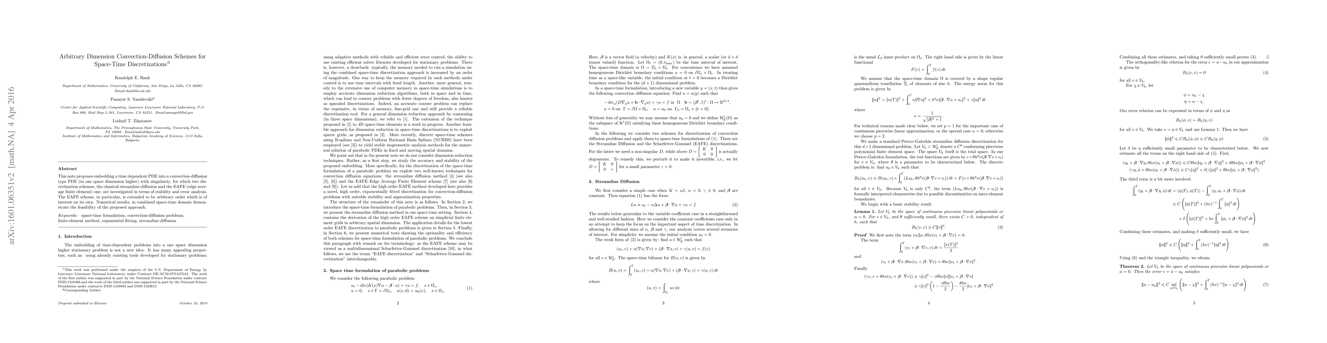This note proposes embedding a time dependent PDE into a convection-diffusion type PDE (in one space dimension higher) with singularity, for which two discretization schemes, the classical streamline-diffusion and the EAFE (edge average finite element) one, are investigated in terms of stability and error analysis. The EAFE scheme, in particular, is extended to be arbitrary order which is of interest on its own. Numerical results, in combined space-time domain demonstrate the feasibility of the proposed approach.