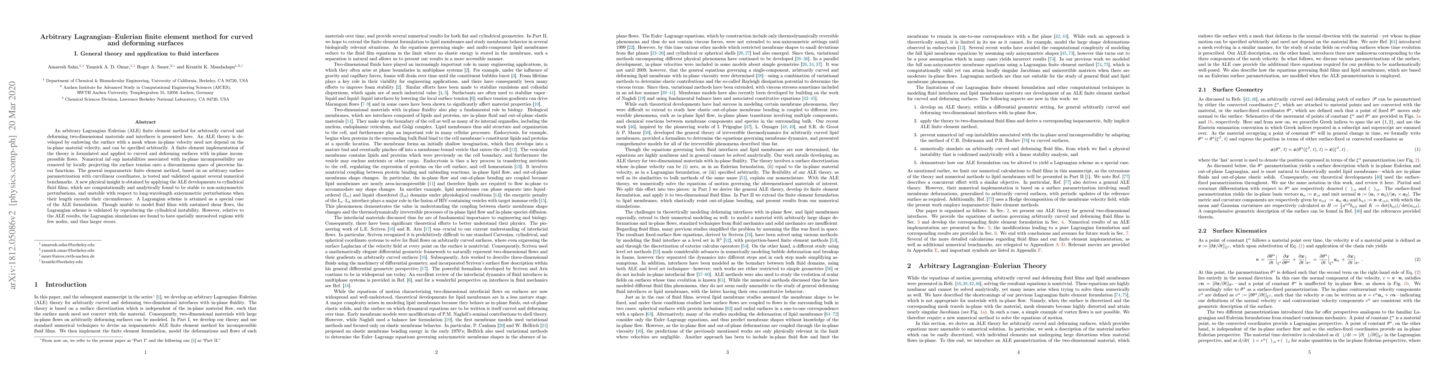 An arbitrary Lagrangian--Eulerian (ALE) finite element method for arbitrarily curved and deforming two-dimensional materials and interfaces is presented here. An ALE theory is developed by endowing the surface with a mesh whose in-plane velocity need not depend on the in-plane material velocity, and can be specified arbitrarily. A finite element implementation of the theory is formulated and applied to curved and deforming surfaces with in-plane incompressible flows. Numerical inf--sup instabilities associated with in-plane incompressibility are removed by locally projecting the surface tension onto a discontinuous space of piecewise linear functions. The general isoparametric finite element method, based on an arbitrary surface parametrization with curvilinear coordinates, is tested and validated against several numerical benchmarks. A new physical insight is obtained by applying the ALE developments to cylindrical fluid films, which are computationally and analytically found to be stable to non-axisymmetric perturbations, and unstable with respect to long-wavelength axisymmetric perturbations when their length exceeds their circumference. A Lagrangian scheme is attained as a special case of the ALE formulation. Though unable to model fluid films with sustained shear flows, the Lagrangian scheme is validated by reproducing the cylindrical instability. However, relative to the ALE results, the Lagrangian simulations are found to have spatially unresolved regions with few nodes, and thus larger errors.
