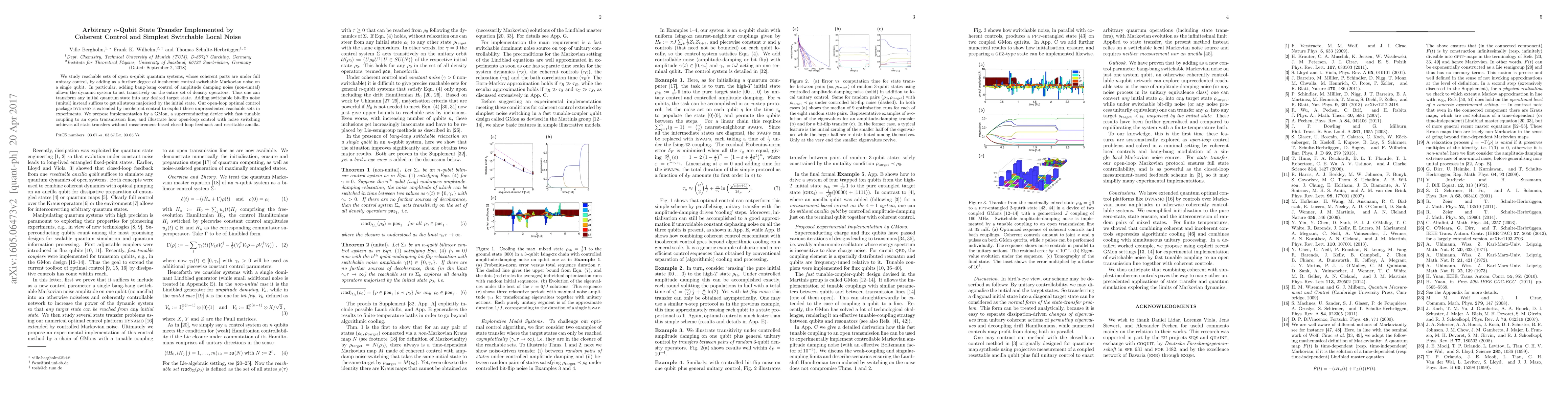 This paper explores the use of coherent control and switchable local noise to achieve arbitrary n-qubit state transfer in open quantum systems. By adding bang-bang control of amplitude damping noise, the system can transform any initial state into any target state, while bit-flip noise allows for state majorization. The study proposes a GMon device for practical implementation.