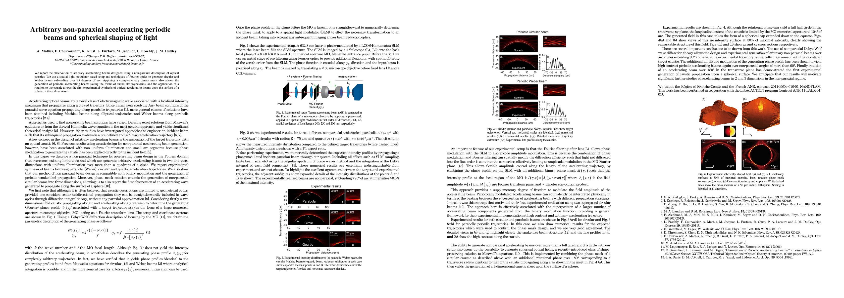 This research demonstrates the generation of arbitrary accelerating beams using non-paraxial optical caustics, achieved via a spatial light modulator and Fourier optics techniques. The study also introduces the first experimental synthesis of optical beams with spherical trajectories in three dimensions.