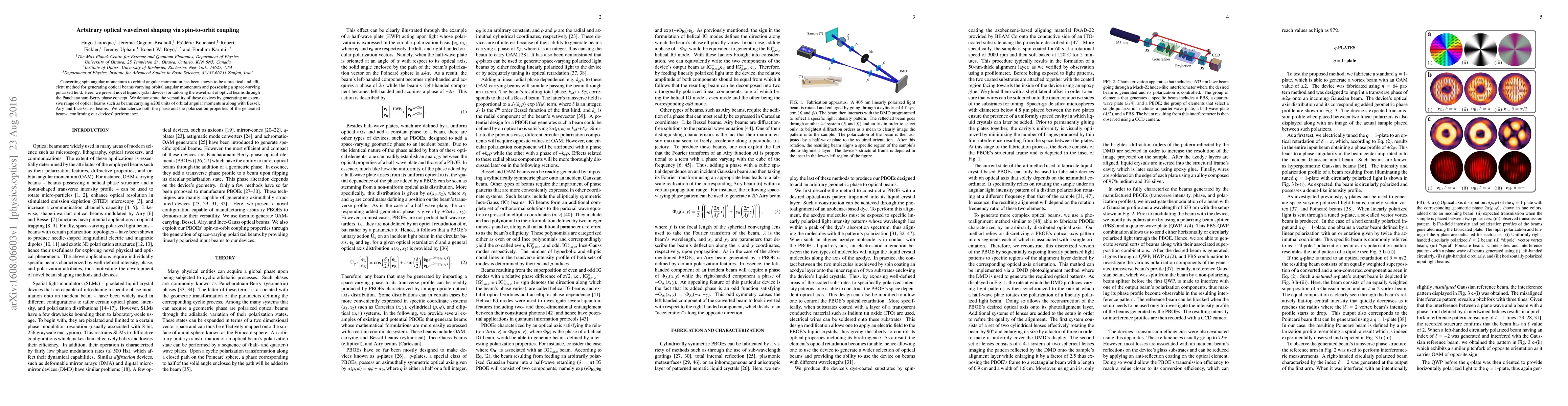 This paper introduces liquid crystal devices that leverage spin-to-orbit coupling to shape optical wavefronts via the Pancharatnam-Berry phase, enabling the generation of diverse optical beams with high orbital angular momentum and complex polarization profiles. The devices' effectiveness is demonstrated through the creation of beams with up to ±200 units of orbital angular momentum and various specialized beam types.