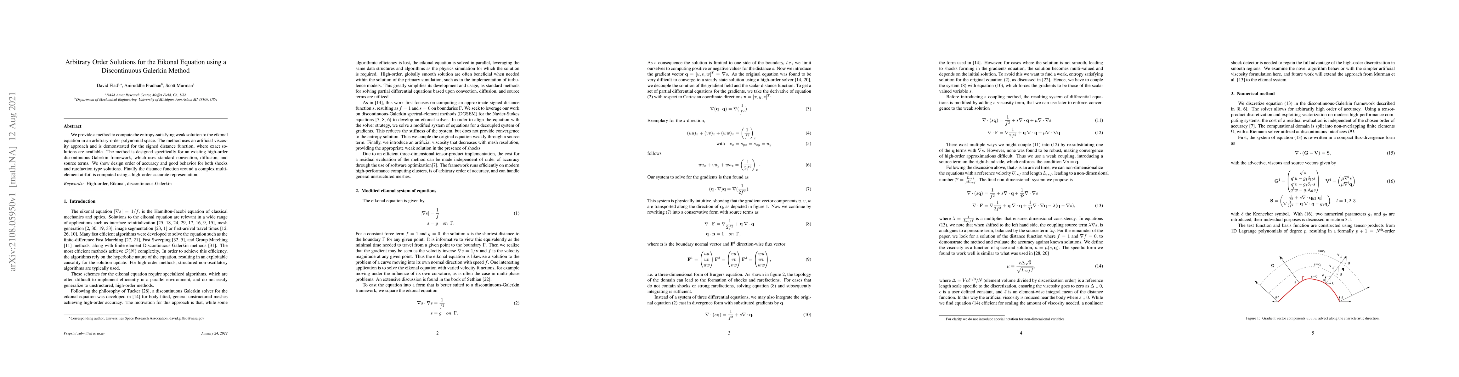 We provide a method to compute the entropy-satisfying weak solution to the eikonal equation in an arbitrary-order polynomial space. The method uses an artificial viscosity approach and is demonstrated for the signed distance function, where exact solutions are available. The method is designed specifically for an existing high-order discontinuous-Galerkin framework, which uses standard convection, diffusion, and source terms. We show design order of accuracy and good behavior for both shocks and rarefaction type solutions. Finally the distance function around a complex multi-element airfoil is computed using a high-order-accurate representation.