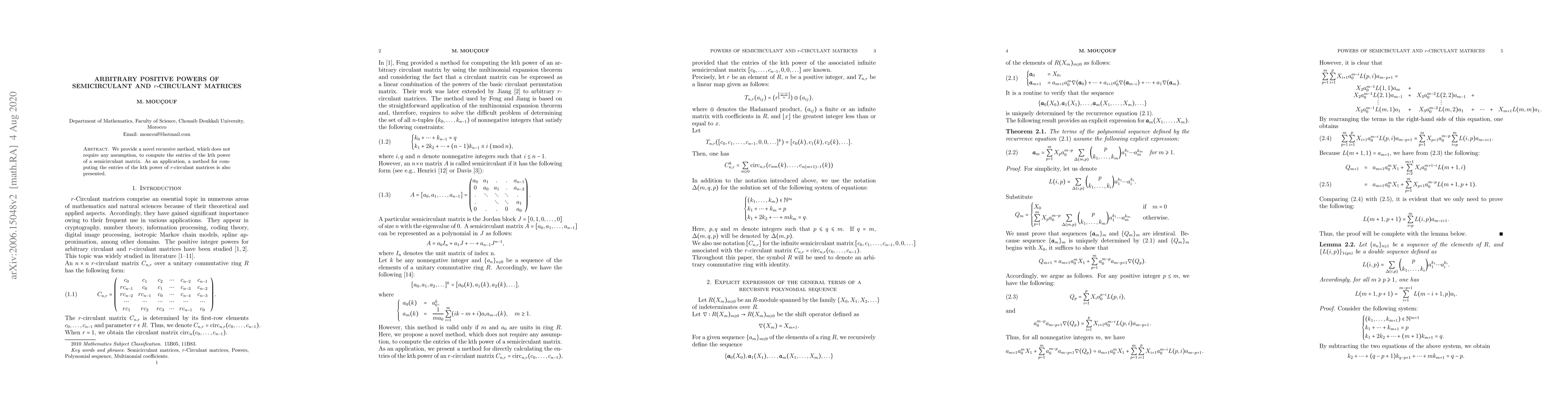 A novel method computes entries of kth power of semicircular and r-circulant matrices without assumptions, providing a recursive approach for efficient calculations.