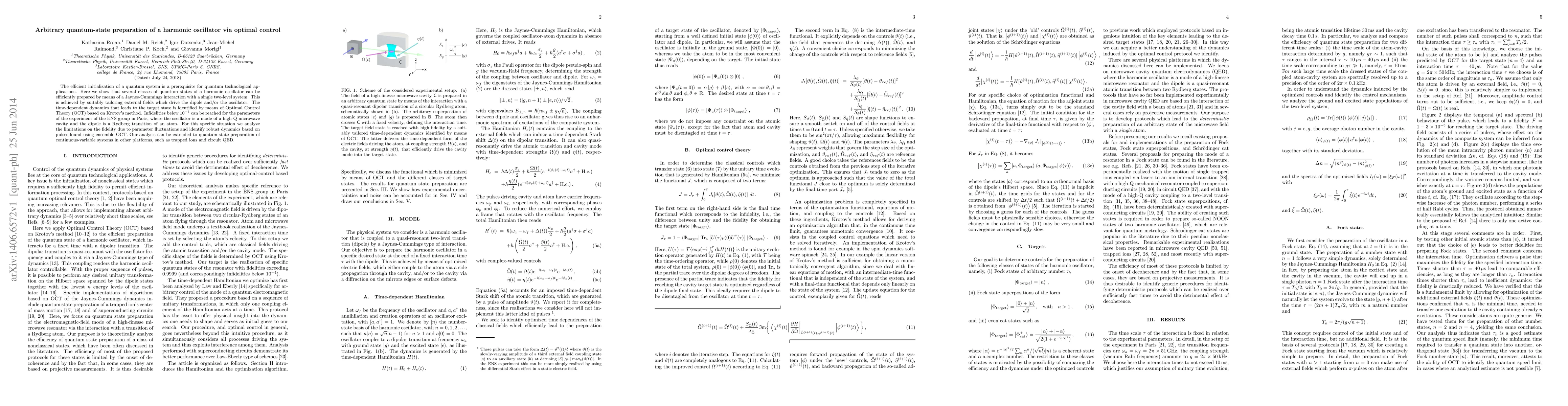 This paper demonstrates the preparation of various quantum states of a harmonic oscillator using optimal control via Jaynes-Cummings interaction, achieving high fidelity below $10^{-4}$ with tailored external fields. The study also explores robustness against parameter fluctuations and extends the method to other quantum platforms.
