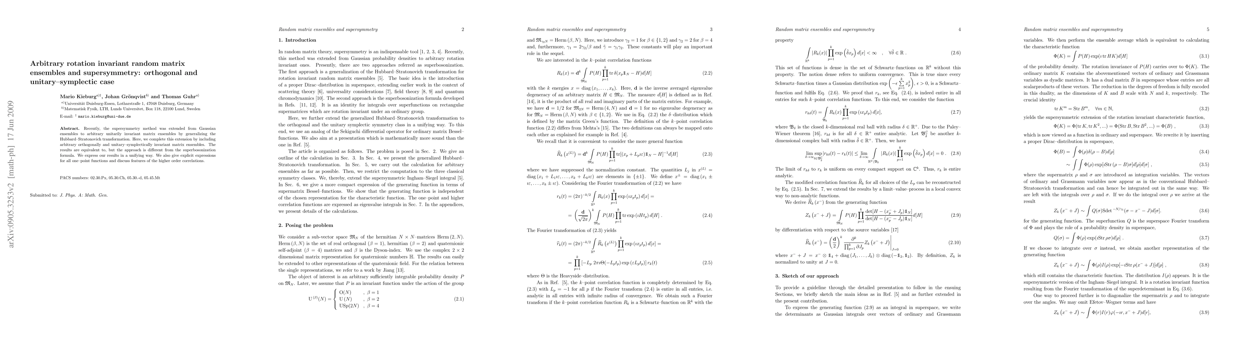 This paper extends the supersymmetry method to arbitrary orthogonally and unitary-symplectically invariant random matrix ensembles, generalizing the Hubbard-Stratonovich transformation. The results provide a unifying approach to these ensembles, offering explicit expressions for one-point functions and insights into higher-order correlations.