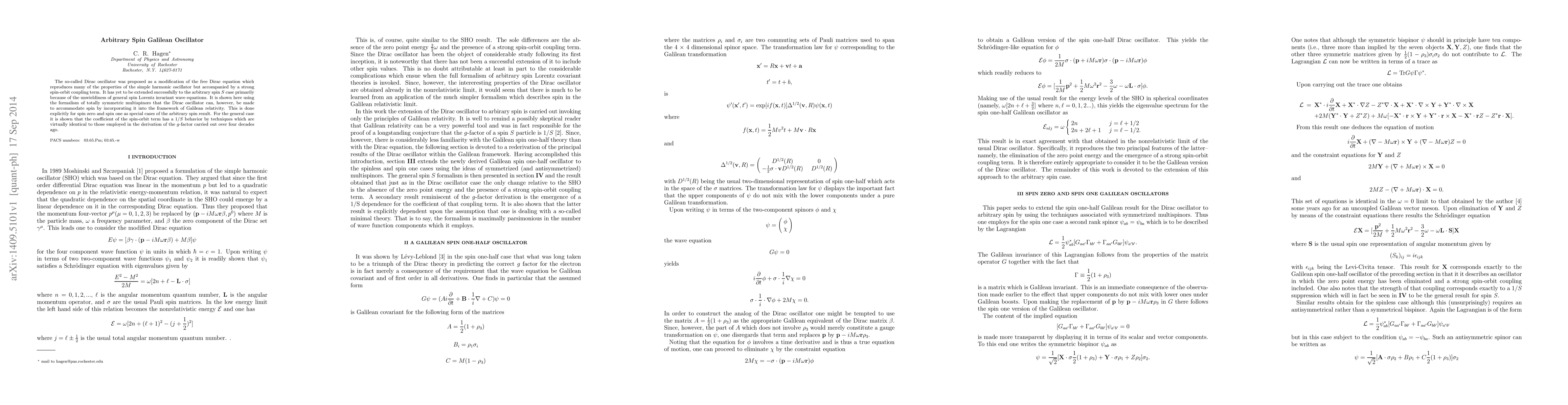 This paper extends the Dirac oscillator to arbitrary spin S by integrating it into the Galilean relativity framework, using totally symmetric multispinors. It demonstrates the successful incorporation of spin for spin zero and spin one as special cases, revealing a 1/S behavior for the spin-orbit coupling coefficient.