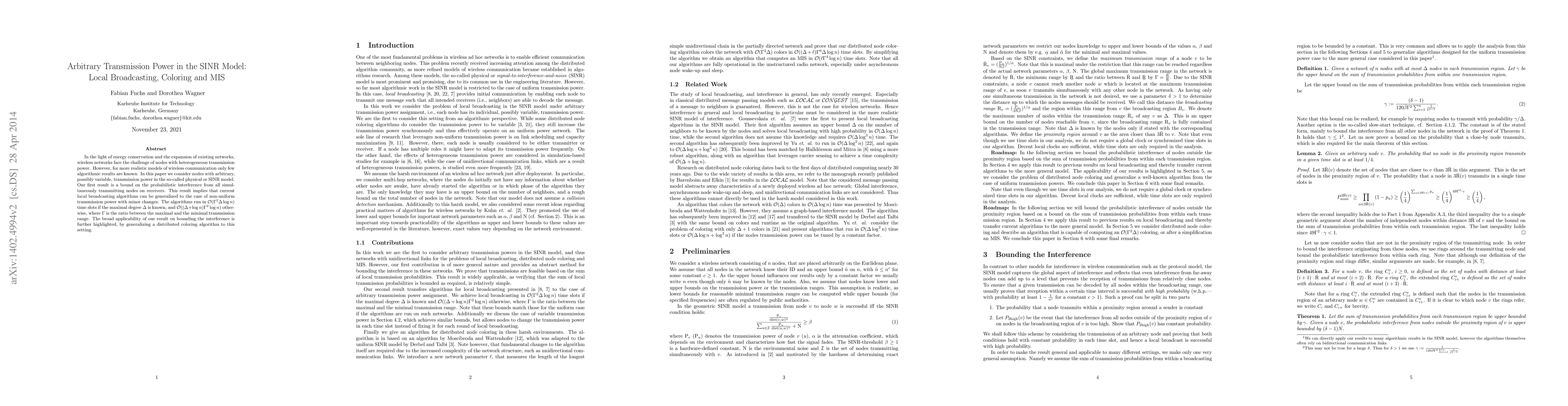 In the light of energy conservation and the expansion of existing networks, wireless networks face the challenge of nodes with heterogeneous transmission power. However, for more realistic models of wireless communication only few algorithmic results are known. In this paper we consider nodes with arbitrary, possibly variable, transmission power in the so-called physical or SINR model. Our first result is a bound on the probabilistic interference from all simultaneously transmitting nodes on receivers. This result implies that current local broadcasting algorithms can be generalized to the case of non-uniform transmission power with minor changes. The algorithms run in $\O(\Gamma^{2} \Delta \log n)$ time slots if the maximal degree $\Delta$ is known, and $\O((\Delta + \log n)\Gamma^{2} \log n)$ otherwise, where $\Gamma$ is the ratio between the maximal and the minimal transmission range. The broad applicability of our result on bounding the interference is further highlighted, by generalizing a distributed coloring algorithm to this setting.
