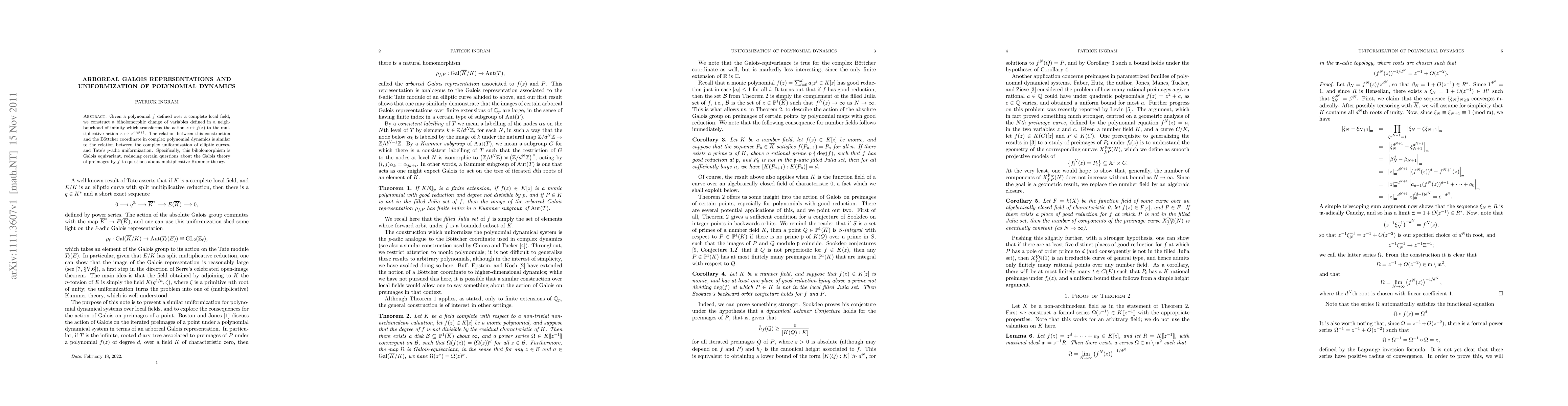 Given a polynomial f of degree d defined over a complete local field, we construct a biholomorphic change of variables defined in a neighbourhood of infinity which transforms the action z->f(z) to the multiplicative action z->z^d. The relation between this construction and the Bottcher coordinate in complex polynomial dynamics is similar to the relation between the complex uniformization of elliptic curves, and Tate's p-adic uniformization. Specifically, this biholomorphism is Galois equivariant, reducing certain questions about the Galois theory of preimages by f to questions about multiplicative Kummer theory.