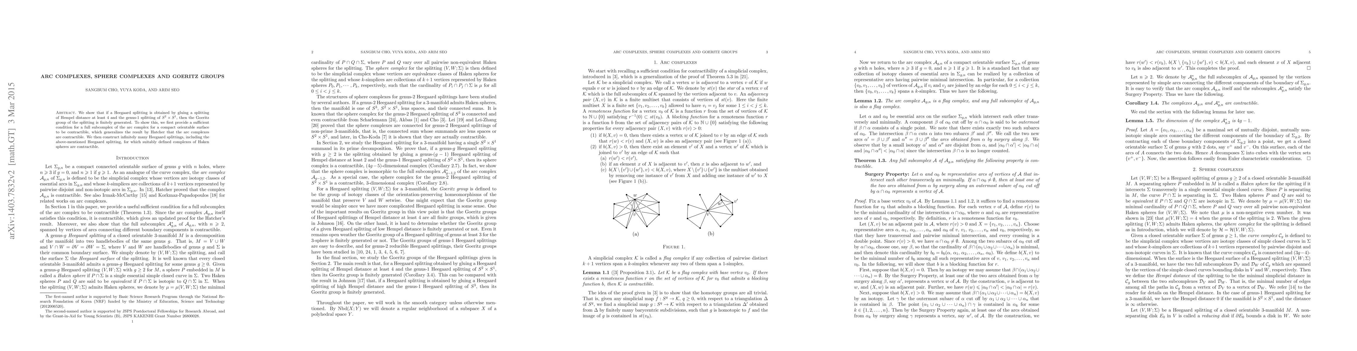 We show that if a Heegaard splitting is obtained by gluing a splitting of Hempel distance at least 4 and the genus-1 splitting of $S^2 \times S^1$, then the Goeritz group of the splitting is finitely generated. To show this, we first provide a sufficient condition for a full subcomplex of the arc complex for a compact orientable surface to be contractible, which generalizes the result by Hatcher that the arc complexes are contractible. We then construct infinitely many Heegaard splittings, including the above-mentioned Heegaard splitting, for which suitably defined complexes of Haken spheres are contractible.