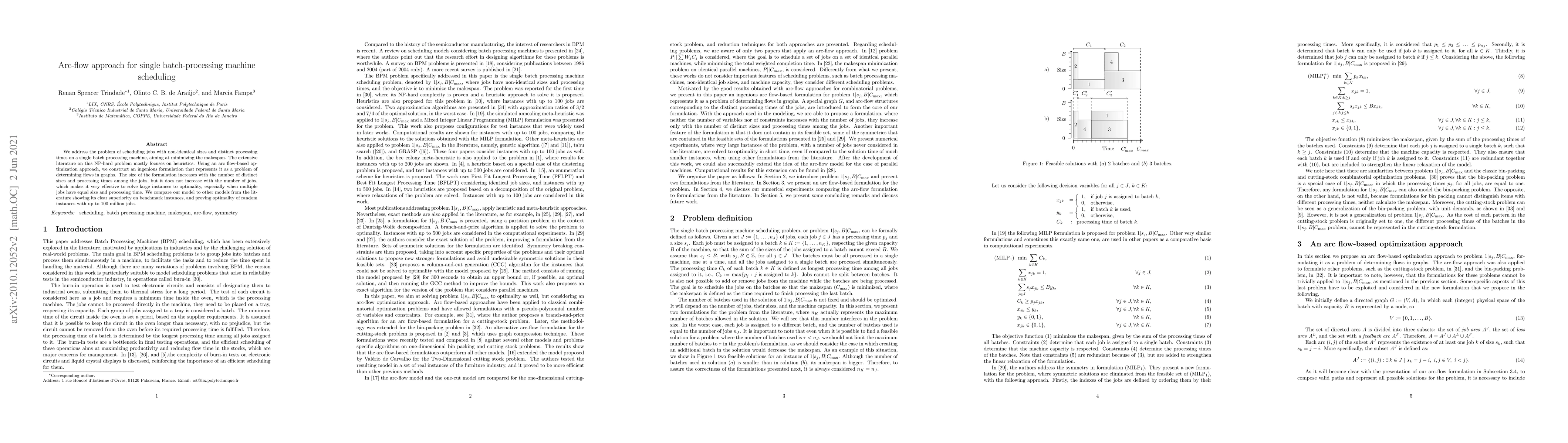 We address the problem of scheduling jobs with non-identical sizes and distinct processing times on a single batch processing machine, aiming at minimizing the makespan. The extensive literature on this NP-hard problem mostly focuses on heuristics. Using an arc flow-based optimization approach, we construct an ingenious formulation that represents it as a problem of determining flows in graphs. The size of the formulation increases with the number of distinct sizes and processing times among the jobs, but it does not increase with the number of jobs, which makes it very effective to solve large instances to optimality, especially when multiple jobs have equal size and processing time. We compare our model to other models from the literature showing its clear superiority on benchmark instances, and proving optimality of random instances with up to 100 million jobs.