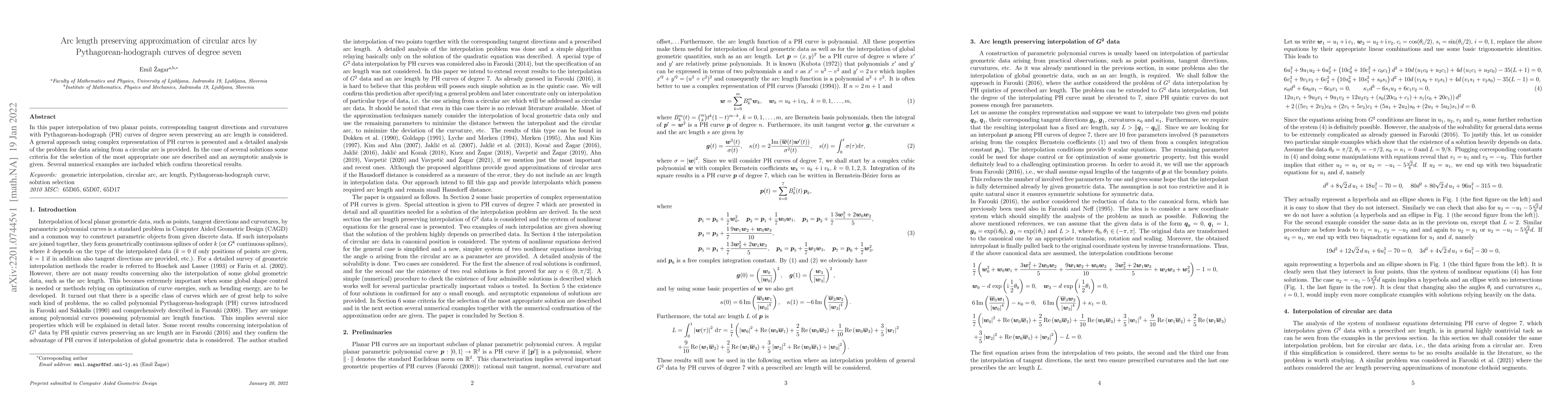 Researchers developed a method to approximate circular arcs using Pythagorean-hodograph curves of degree seven that preserve the original arc length, providing a new approach for accurate interpolation of curved paths.