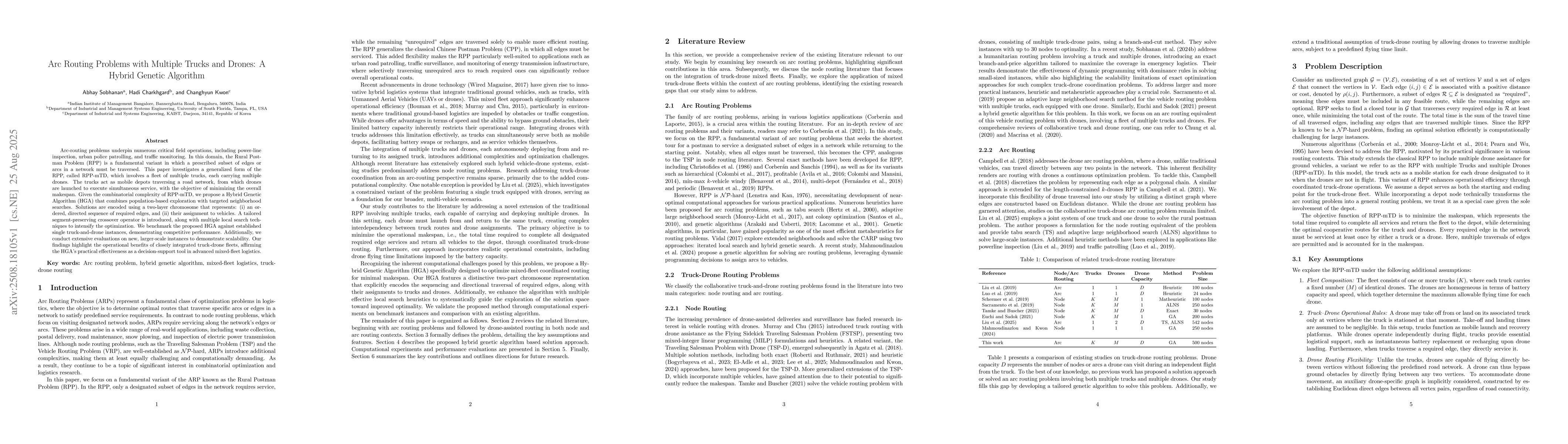 Arc-routing problems underpin numerous critical field operations, including power-line inspection, urban police patrolling, and traffic monitoring. In this domain, the Rural Postman Problem (RPP) is a fundamental variant in which a prescribed subset of edges or arcs in a network must be traversed. This paper investigates a generalized form of the RPP, called RPP-mTD, which involves a fleet of multiple trucks, each carrying multiple drones. The trucks act as mobile depots traversing a road network, from which drones are launched to execute simultaneous service, with the objective of minimizing the overall makespan. Given the combinatorial complexity of RPP-mTD, we propose a Hybrid Genetic Algorithm (HGA) that combines population-based exploration with targeted neighborhood searches. Solutions are encoded using a two-layer chromosome that represents: (i) an ordered, directed sequence of required edges, and (ii) their assignment to vehicles. A tailored segment-preserving crossover operator is introduced, along with multiple local search techniques to intensify the optimization. We benchmark the proposed HGA against established single truck-and-drone instances, demonstrating competitive performance. Additionally, we conduct extensive evaluations on new, larger-scale instances to demonstrate scalability. Our findings highlight the operational benefits of closely integrated truck-drone fleets, affirming the HGA's practical effectiveness as a decision-support tool in advanced mixed-fleet logistics.