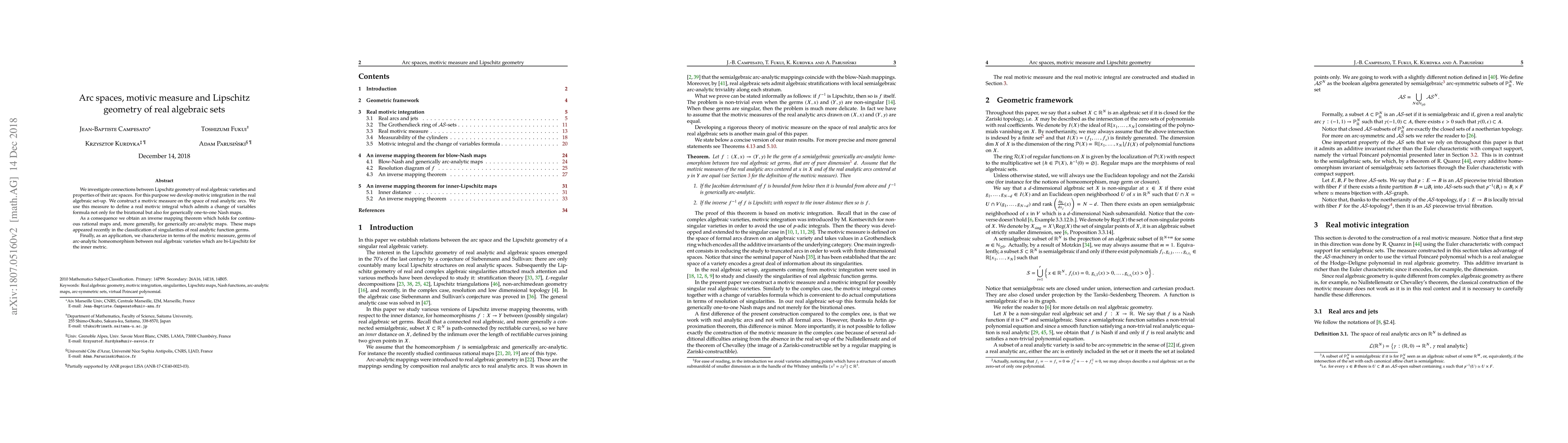 This paper explores the relationships between Lipschitz geometry of real algebraic varieties and their arc spaces, developing motivic integration and a motivic measure on real analytic arcs. It leads to an inverse mapping theorem for continuous rational maps and characterizes bi-Lipschitz homeomorphisms between real algebraic varieties.
