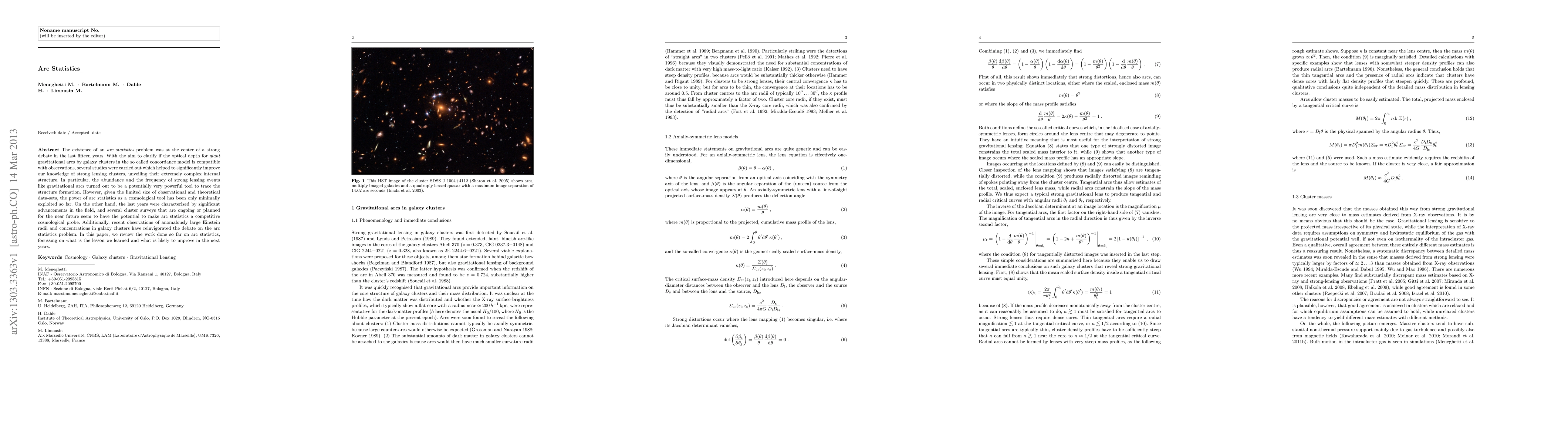 This paper reviews the ongoing debate and advancements in arc statistics, focusing on the optical depth for giant gravitational arcs by galaxy clusters. It highlights how strong lensing events can trace structure formation, despite limited data, and discusses the potential for future cluster surveys to enhance arc statistics as a cosmological tool.