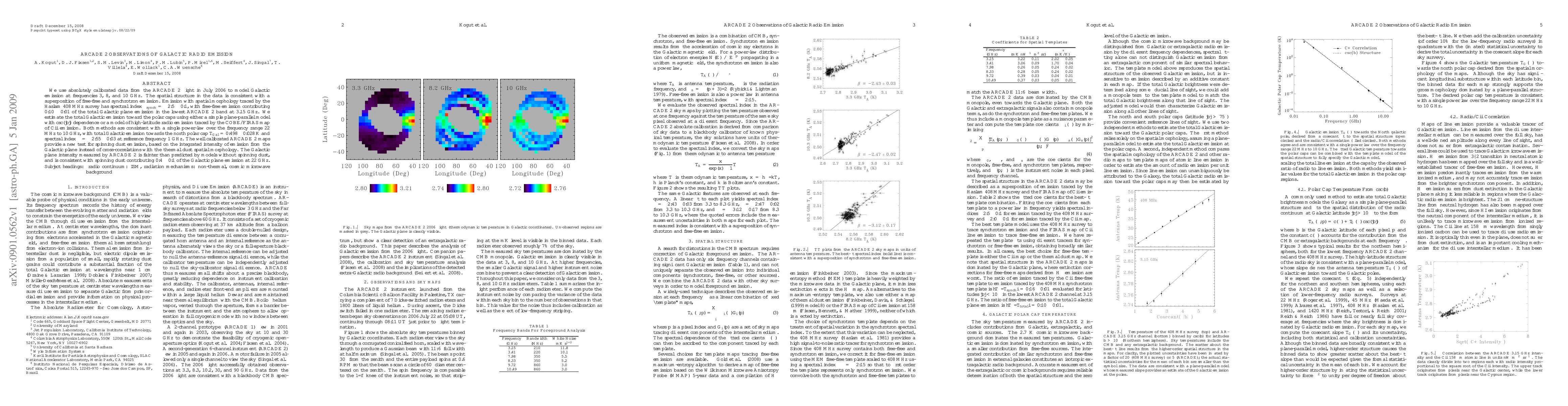 We use absolutely calibrated data from the ARCADE 2 flight in July 2006 to model Galactic emission at frequencies 3, 8, and 10 GHz. The spatial structure in the data is consistent with a superposition of free-free and synchrotron emission. Emission with spatial morphology traced by the Haslam 408 MHz survey has spectral index beta_synch = -2.5 +/- 0.1, with free-free emission contributing 0.10 +/- 0.01 of the total Galactic plane emission in the lowest ARCADE 2 band at 3.15 GHz. We estimate the total Galactic emission toward the polar caps using either a simple plane-parallel model with csc|b| dependence or a model of high-latitude radio emission traced by the COBE/FIRAS map of CII emission. Both methods are consistent with a single power-law over the frequency range 22 MHz to 10 GHz, with total Galactic emission towards the north polar cap T_Gal = 0.498 +/- 0.028 K and spectral index beta = -2.55 +/- 0.03 at reference frequency 1 GHz. The well calibrated ARCADE 2 maps provide a new test for spinning dust emission, based on the integrated intensity of emission from the Galactic plane instead of cross-correlations with the thermal dust spatial morphology. The Galactic plane intensity measured by ARCADE 2 is fainter than predicted by models without spinning dust, and is consistent with spinning dust contributing 0.4 +/- 0.1 of the Galactic plane emission at 22 GHz.