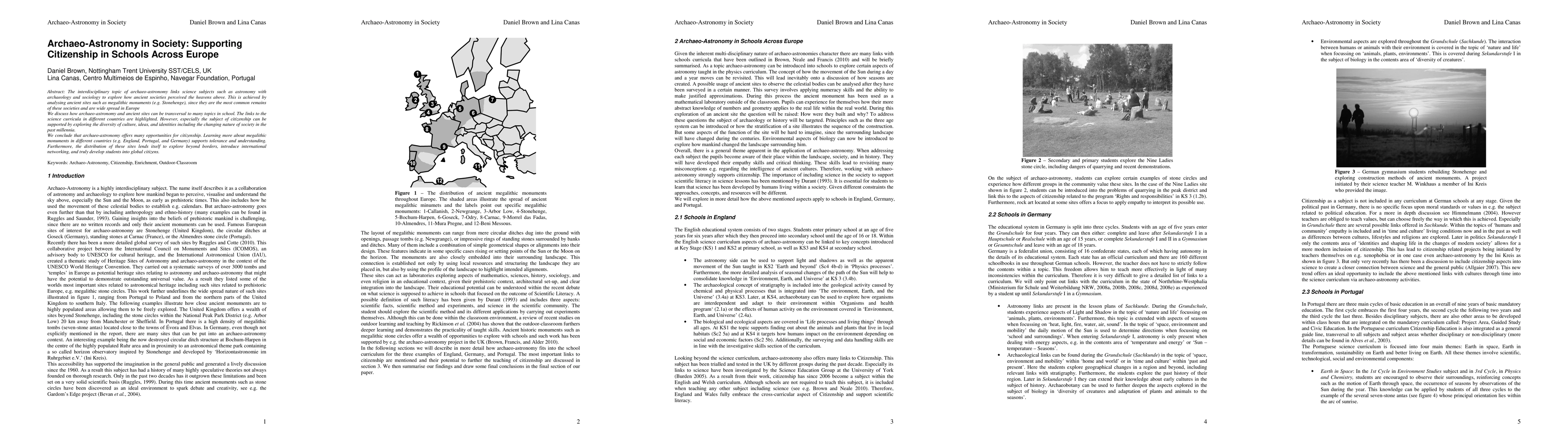 The interdisciplinary topic of archaeo-astronomy links science subjects such as astronomy with archaeology and sociology to explore how ancient societies perceived the heavens above. This is achieved by analysing ancient sites such as megalithic monuments (e.g. Stonehenge), since they are the most common remains of these societies and are wide spread in Europe. We discuss how archaeo-astronomy and ancient sites can be transversal to many topics in school. The links to the science curricula in different countries are highlighted. However, especially the subject of citizenship can be supported by exploring the diversity of culture, ideas, and identities including the changing nature of society in the past millennia. We conclude that archaeo-astronomy offers many opportunities for citizenship. Learning more about megalithic monuments in different countries (e.g. England, Portugal, and Germany) supports tolerance and understanding. Furthermore, the distribution of these sites lends itself to explore beyond borders, introduce international networking, and truly develop students into global citizens.