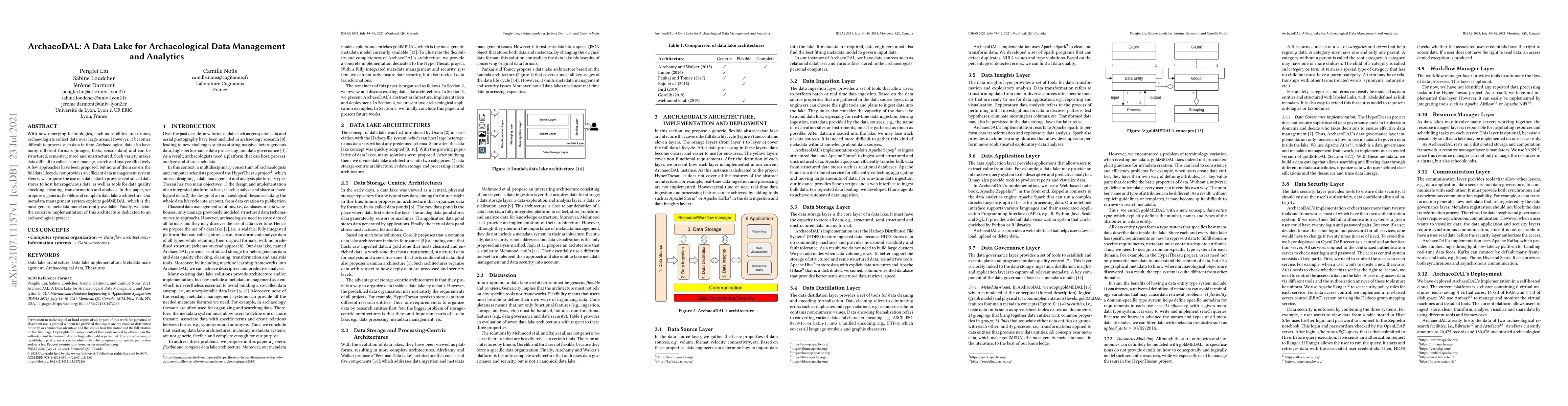 The paper proposes ArchaeoDAL, a data lake architecture for managing and analyzing heterogeneous archaeological data collected from various sources. The system aims to provide a centralized, flexible solution for data storage, quality checking, cleaning, transformation, and analysis, leveraging the goldMEDAL metadata model for comprehensive data management.