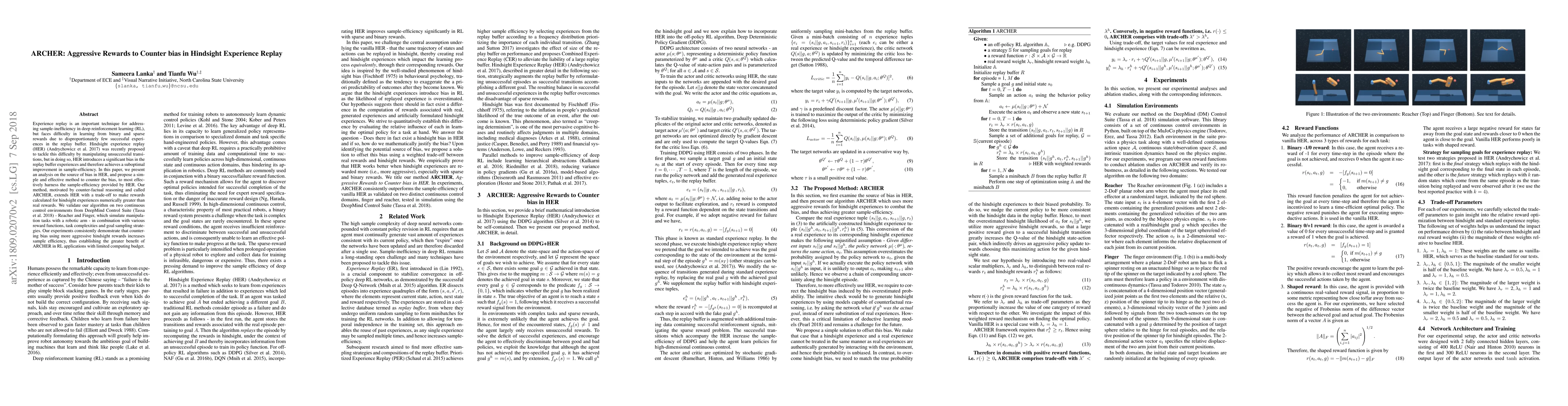 The paper proposes ARCHER, a method to counter the bias in hindsight experience replay (HER) in deep reinforcement learning by making hindsight rewards more aggressive, thereby enhancing sample efficiency in manipulation tasks. Experiments in robotic arm environments show ARCHER significantly improves learning with sparse rewards.