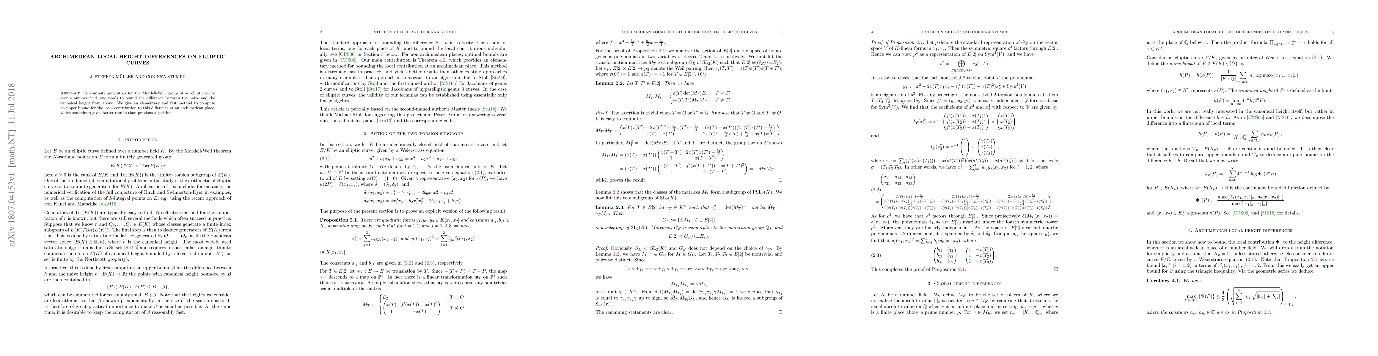 This paper presents an efficient method to compute an upper bound for the local Archimedean height difference on elliptic curves over number fields, providing potentially better results than existing algorithms. The method aims to aid in determining generators for the Mordell-Weil group.