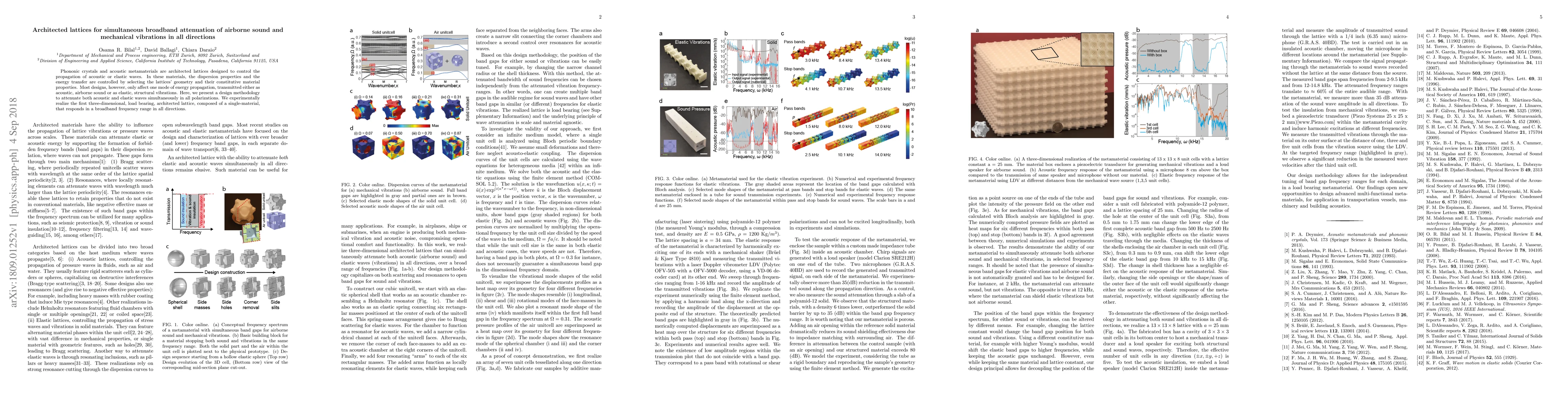 This paper introduces a design methodology for architected lattices that simultaneously attenuate both airborne sound and mechanical vibrations across all directions. The researchers experimentally demonstrate the first three-dimensional, load-bearing lattice that achieves broadband attenuation using a single-material.