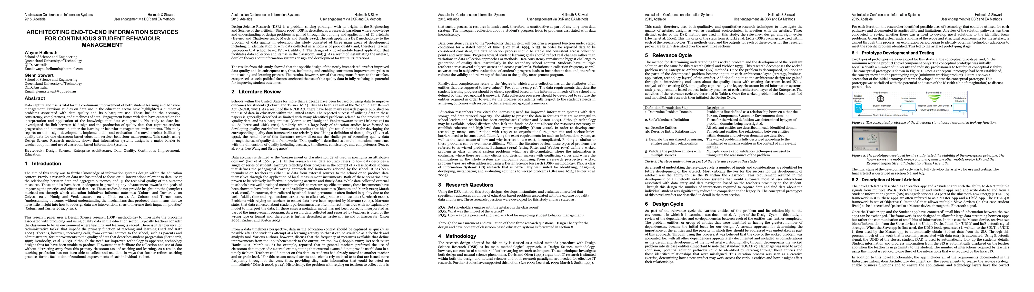 This study investigates the link between Information Systems Design and data quality in student behavior management, developing a novel artefact for pastoral care. It finds that poor IS design significantly hinders teacher adoption and effective use of classroom-based systems.