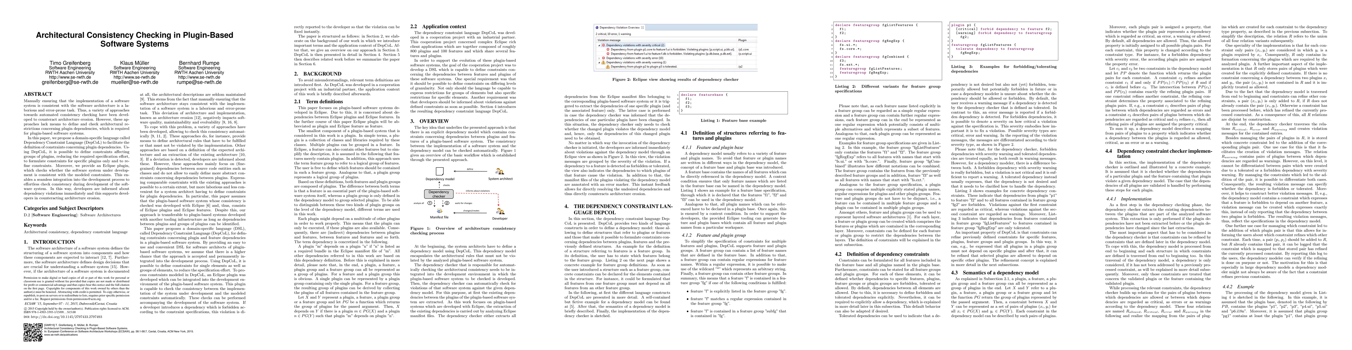 This paper proposes a Dependency Constraint Language (DepCoL) to define and check architectural restrictions in plugin-based software systems, and provides an Eclipse plugin to automate consistency checks, thereby aiding developers in preventing architecture erosion.