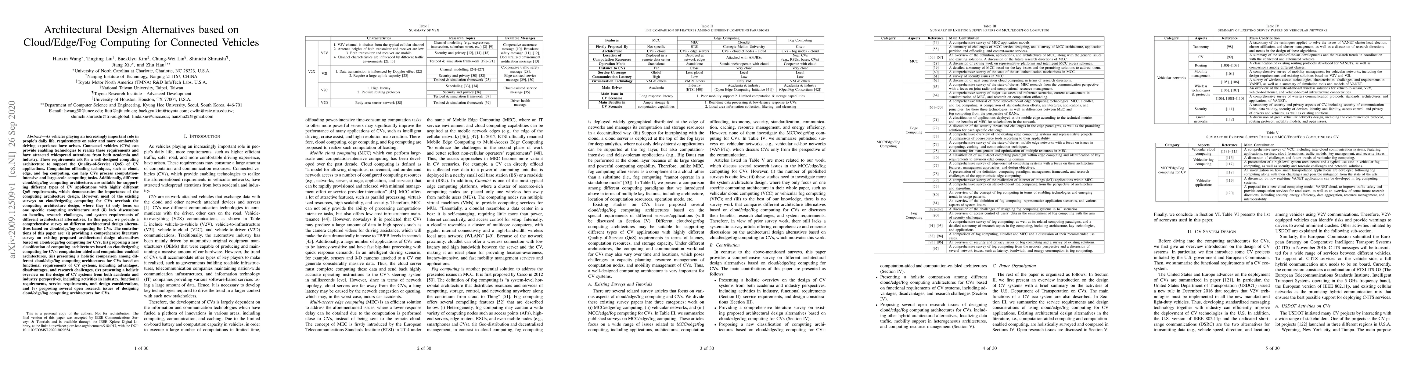 This paper conducts a comprehensive survey on architectural design alternatives for connected vehicles using cloud, edge, and fog computing. It classifies these architectures into computation-aided and computation-enabled types and provides a detailed comparison highlighting advantages, disadvantages, and research challenges of each.
