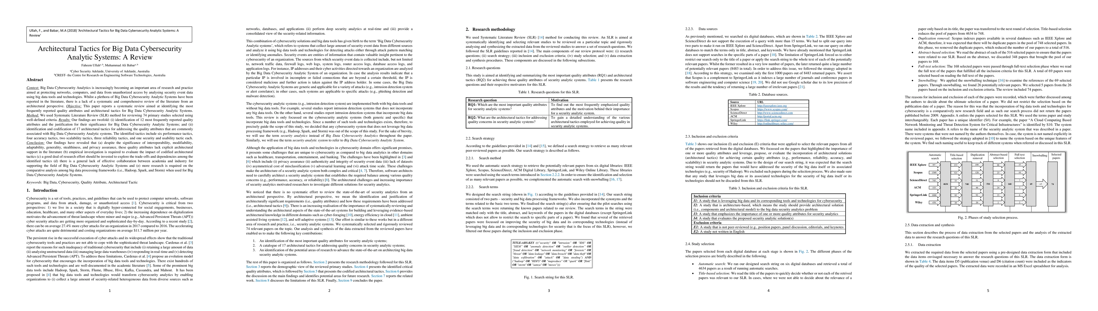 This paper systematically reviews 74 studies to identify key quality attributes and architectural tactics for Big Data Cybersecurity Analytic Systems, revealing 12 important attributes and 17 tactics, while noting a lack of support for some crucial attributes and the need for further empirical evaluation and industry-academia collaboration.