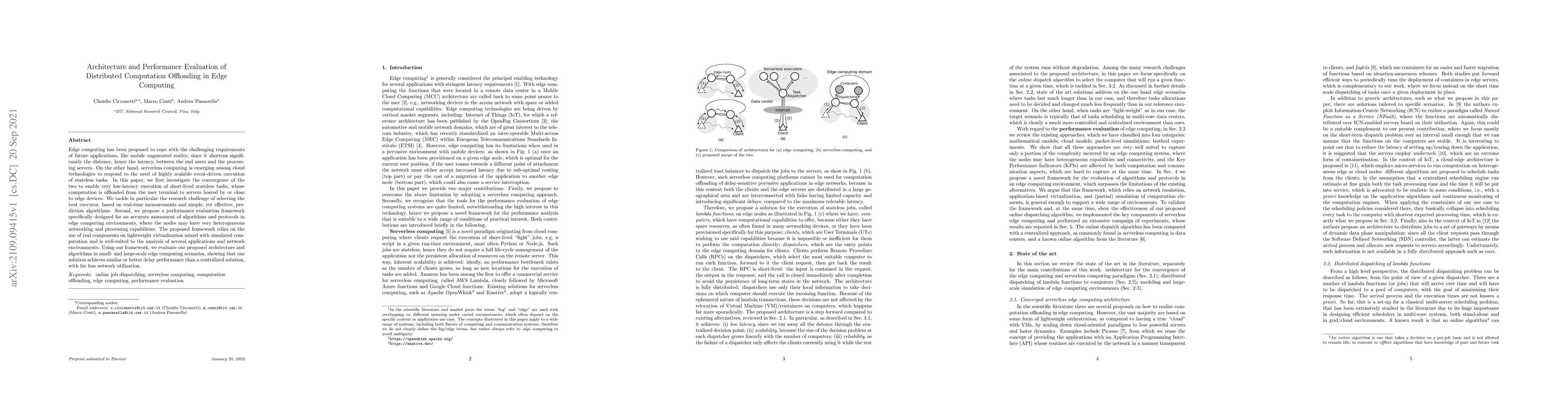 Researchers propose a novel edge computing architecture that offloads short-lived stateless tasks to edge nodes for low-latency applications, achieving comparable delay performance to centralized solutions with reduced network utilization.