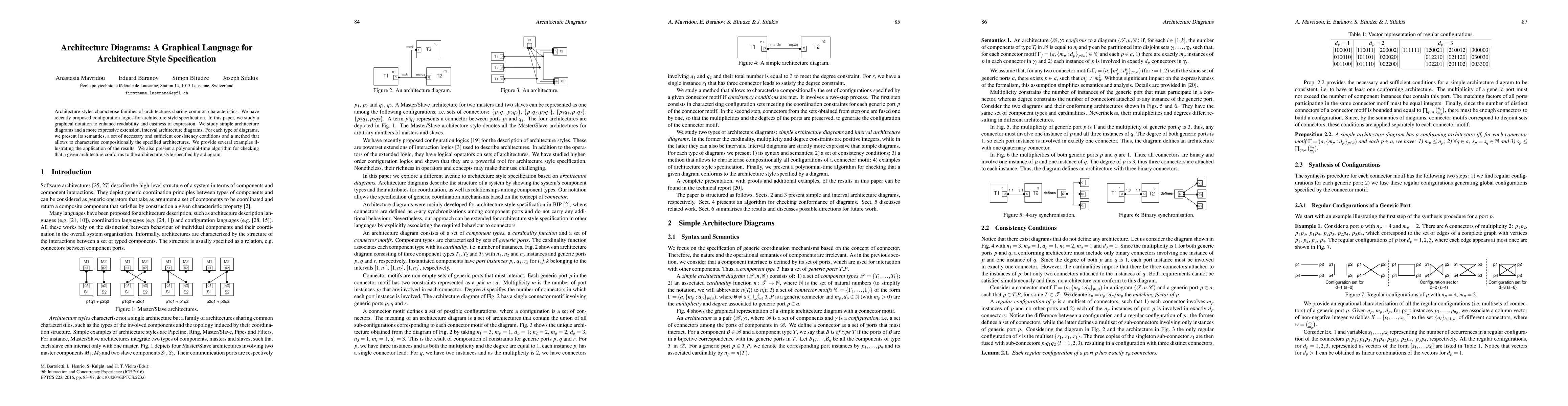 This paper proposes graphical notations, specifically simple and interval architecture diagrams, to enhance the readability and expressiveness of architecture style specifications. It provides semantics, consistency conditions, and a method for compositional characterization, along with a polynomial-time algorithm for verifying architecture conformity.