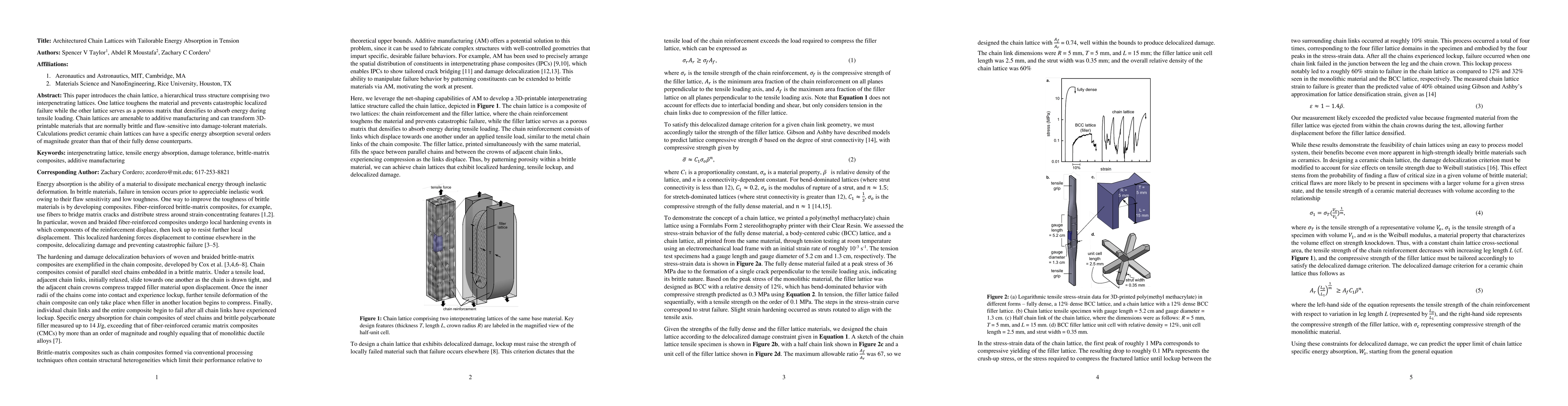 This paper introduces a new material design called chain lattices that can transform brittle materials into damage-tolerant ones through 3D printing. It predicts these chain lattices can absorb energy several orders of magnitude greater than their dense counterparts.