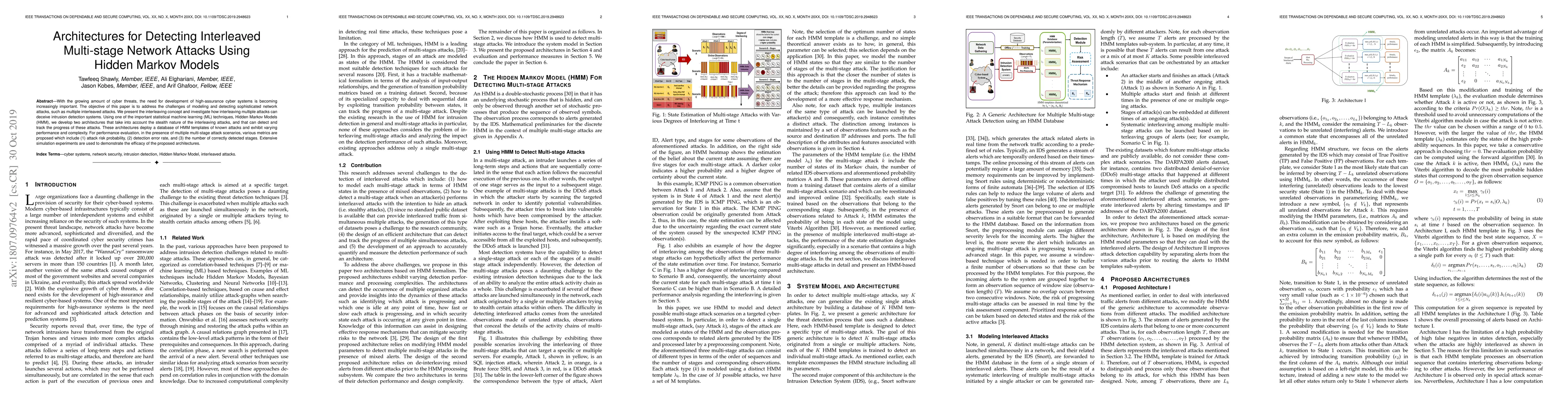 With the growing amount of cyber threats, the need for development of high-assurance cyber systems is becoming increasingly important. The objective of this paper is to address the challenges of modeling and detecting sophisticated network attacks, such as multiple interleaved attacks. We present the interleaving concept and investigate how interleaving multiple attacks can deceive intrusion detection systems. Using one of the important statistical machine learning (ML) techniques, Hidden Markov Models (HMM), we develop two architectures that take into account the stealth nature of the interleaving attacks, and that can detect and track the progress of these attacks. These architectures deploy a database of HMM templates of known attacks and exhibit varying performance and complexity. For performance evaluation, in the presence of multiple multi-stage attack scenarios, various metrics are proposed which include (1) attack risk probability, (2) detection error rate, and (3) the number of correctly detected stages. Extensive simulation experiments are used to demonstrate the efficacy of the proposed architectures.