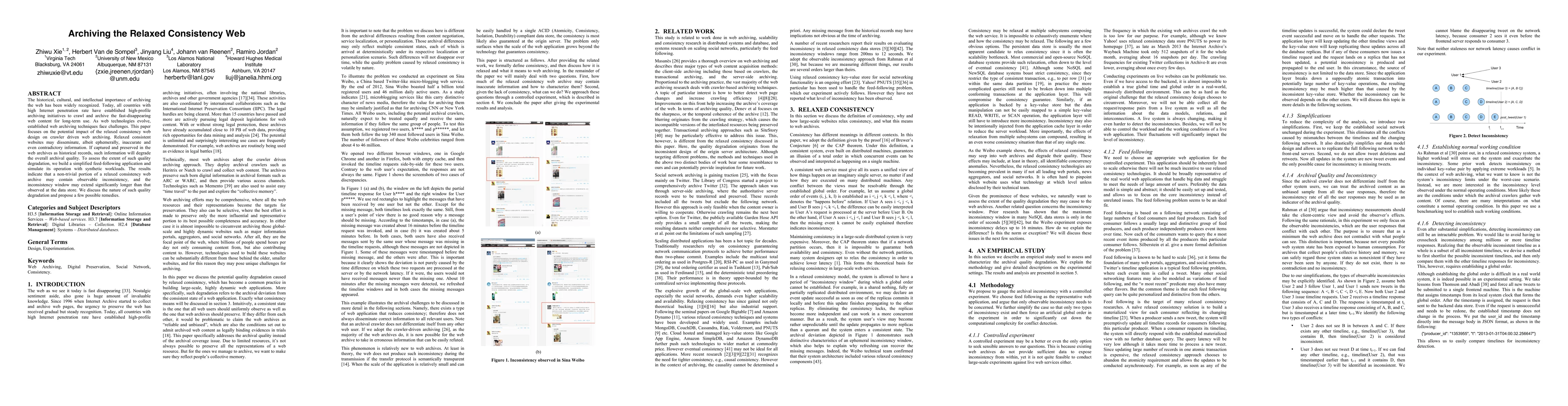 The historical, cultural, and intellectual importance of archiving the web has been widely recognized. Today, all countries with high Internet penetration rate have established high-profile archiving initiatives to crawl and archive the fast-disappearing web content for long-term use. As web technologies evolve, established web archiving techniques face challenges. This paper focuses on the potential impact of the relaxed consistency web design on crawler driven web archiving. Relaxed consistent websites may disseminate, albeit ephemerally, inaccurate and even contradictory information. If captured and preserved in the web archives as historical records, such information will degrade the overall archival quality. To assess the extent of such quality degradation, we build a simplified feed-following application and simulate its operation with synthetic workloads. The results indicate that a non-trivial portion of a relaxed consistency web archive may contain observable inconsistency, and the inconsistency window may extend significantly longer than that observed at the data store. We discuss the nature of such quality degradation and propose a few possible remedies.