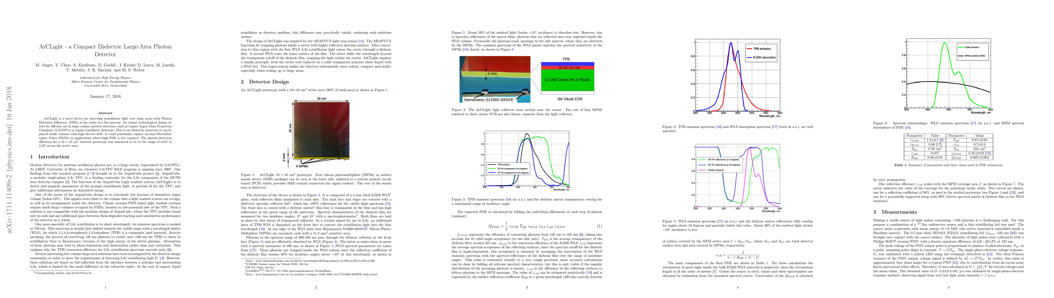 ArCLight is a compact dielectric photon detector with a PDE of 0.8% to 2.2%, suitable for large-area scintillation light detection in particle detectors like LArTPCs. Its dielectric design allows operation in high electric fields, potentially replacing vacuum PMTs.